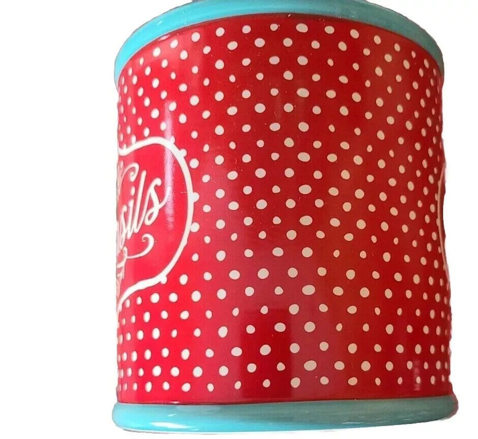 Pioneer Woman Flea Market Utensil Crock Red White Polka Dot Stoneware Gift NEW