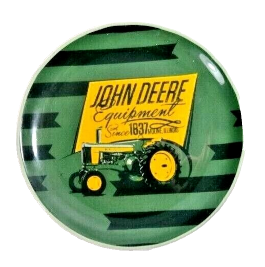 John Deere salad or dessert dinner plate featuring the green tractor with the text "JOHN DEERE Equipment since 1837, Moline, Illinois". Great farming or agriculture decor.