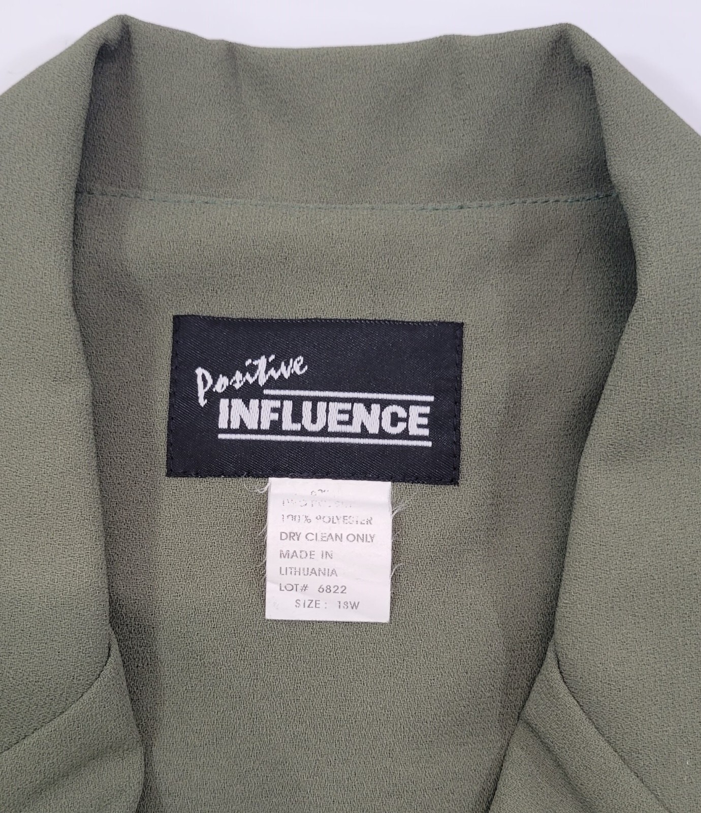 L) Vintage Woman Positive Influence Olive 2 Piece Suit Set Pants Jacket 18W