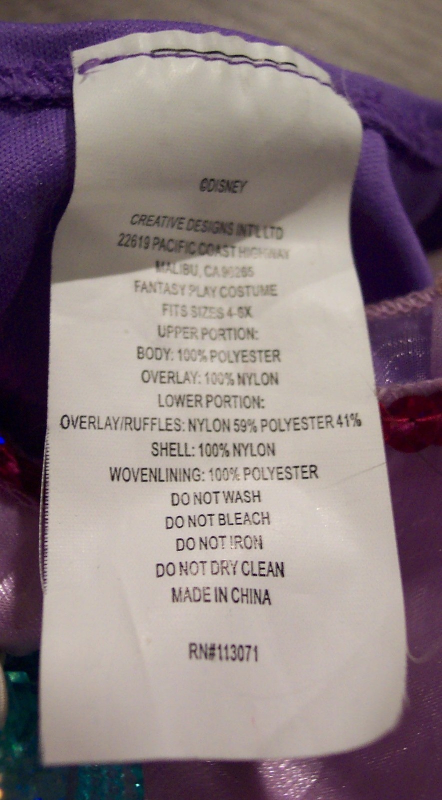 This is a Disney Little Mermaid ARIEL PRINCESS CHILDREN'S COSTUME DRES CHILDREN'S COSTUME. Made by Creative Designs. The tag says "4-6x". It is 28 inches long from top of shoulder to bottom of dress and about 13 inches wide from armpit to armpit. It is in pretty good condition, some slight wear from use, but nothing major. See pictures. Combine auctions to save on shipping. AG p