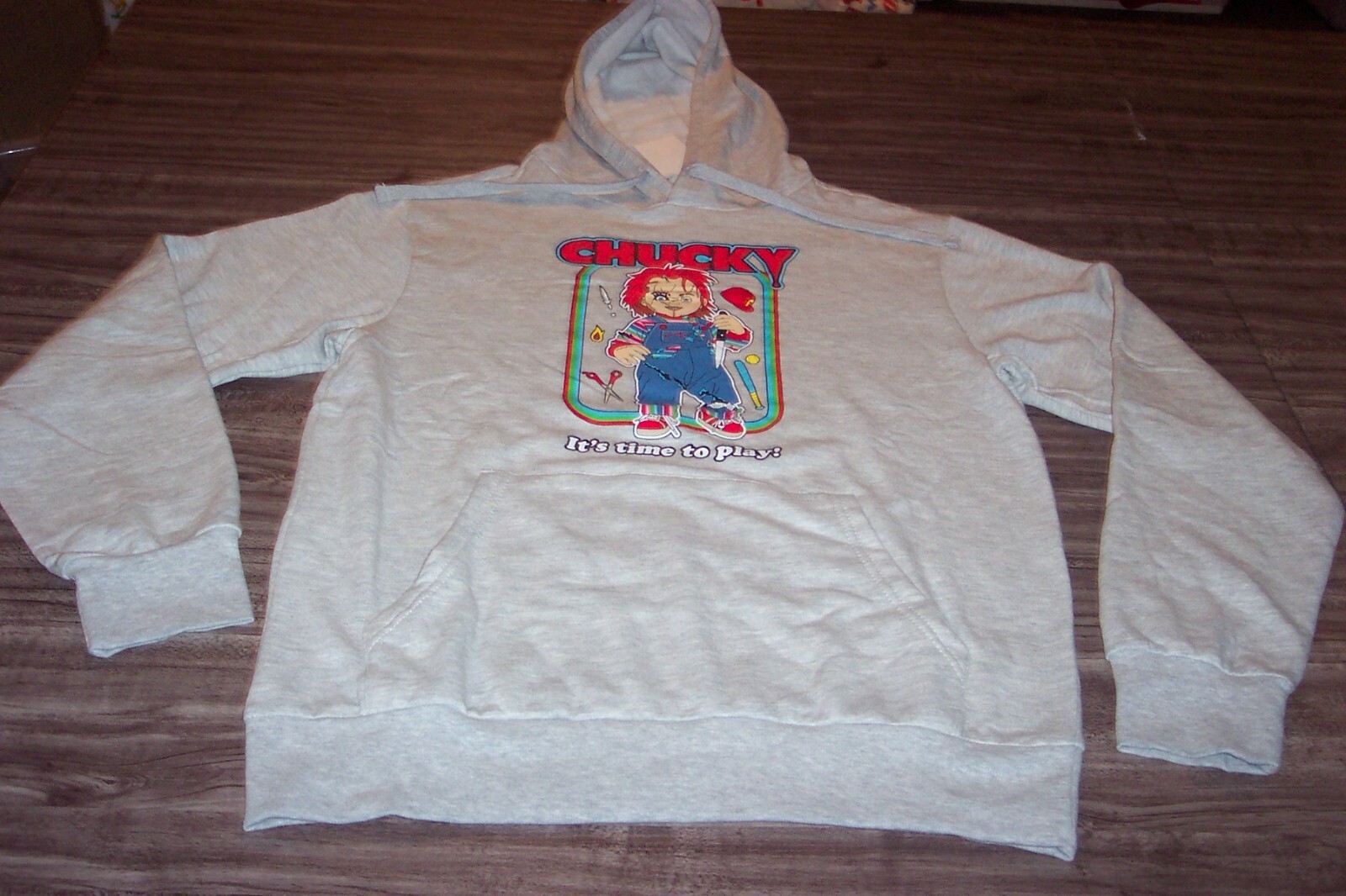 This is a CHILD'S PLAY CHUCKY Time To Play Hoodie HOODED Sweatshirt. It is a Size SMALL and is NEW with the tag. It is 22 inches from armpit to armpit and 29 inches in length. Combine auctions to save on shipping. AG
