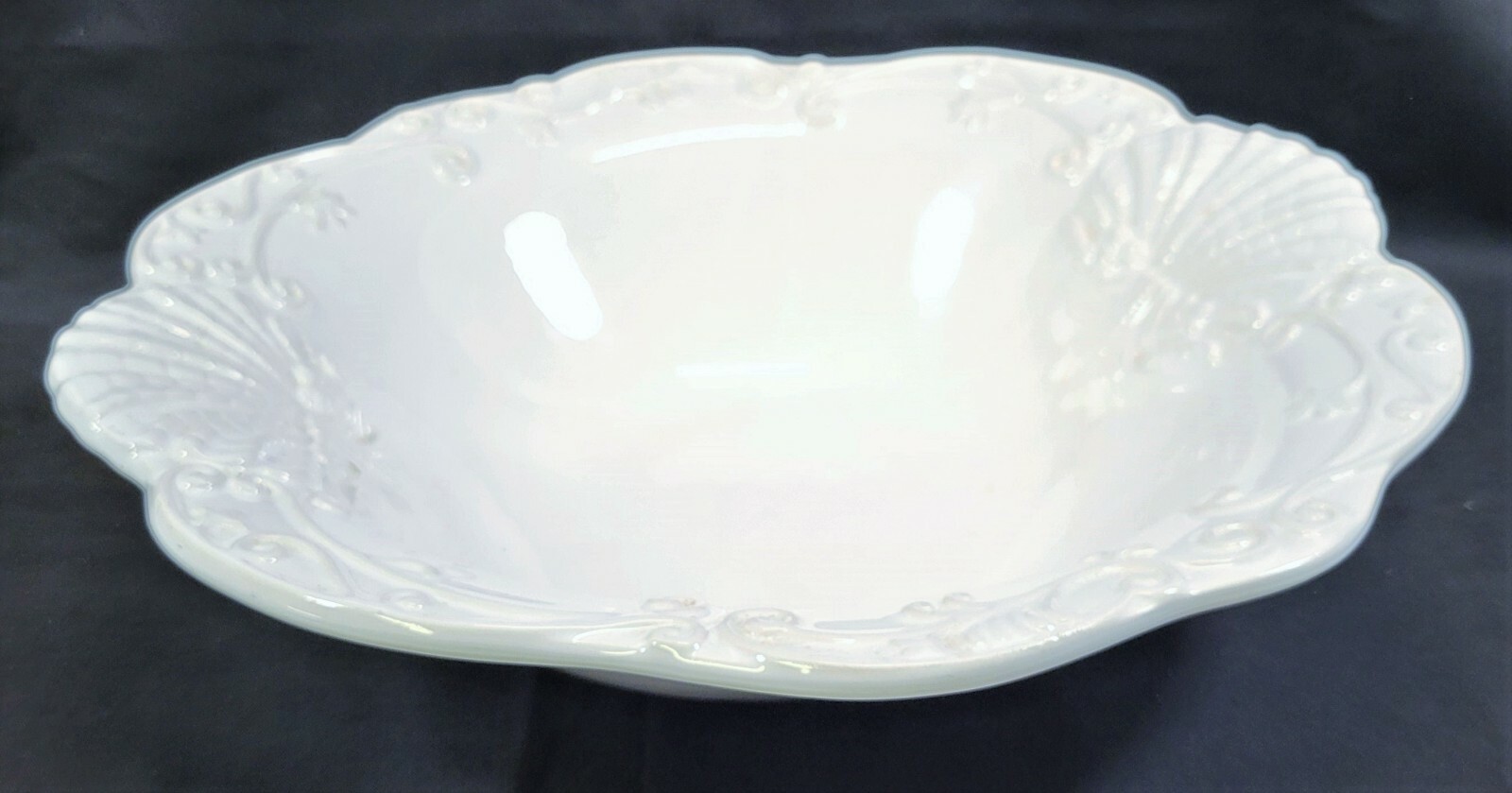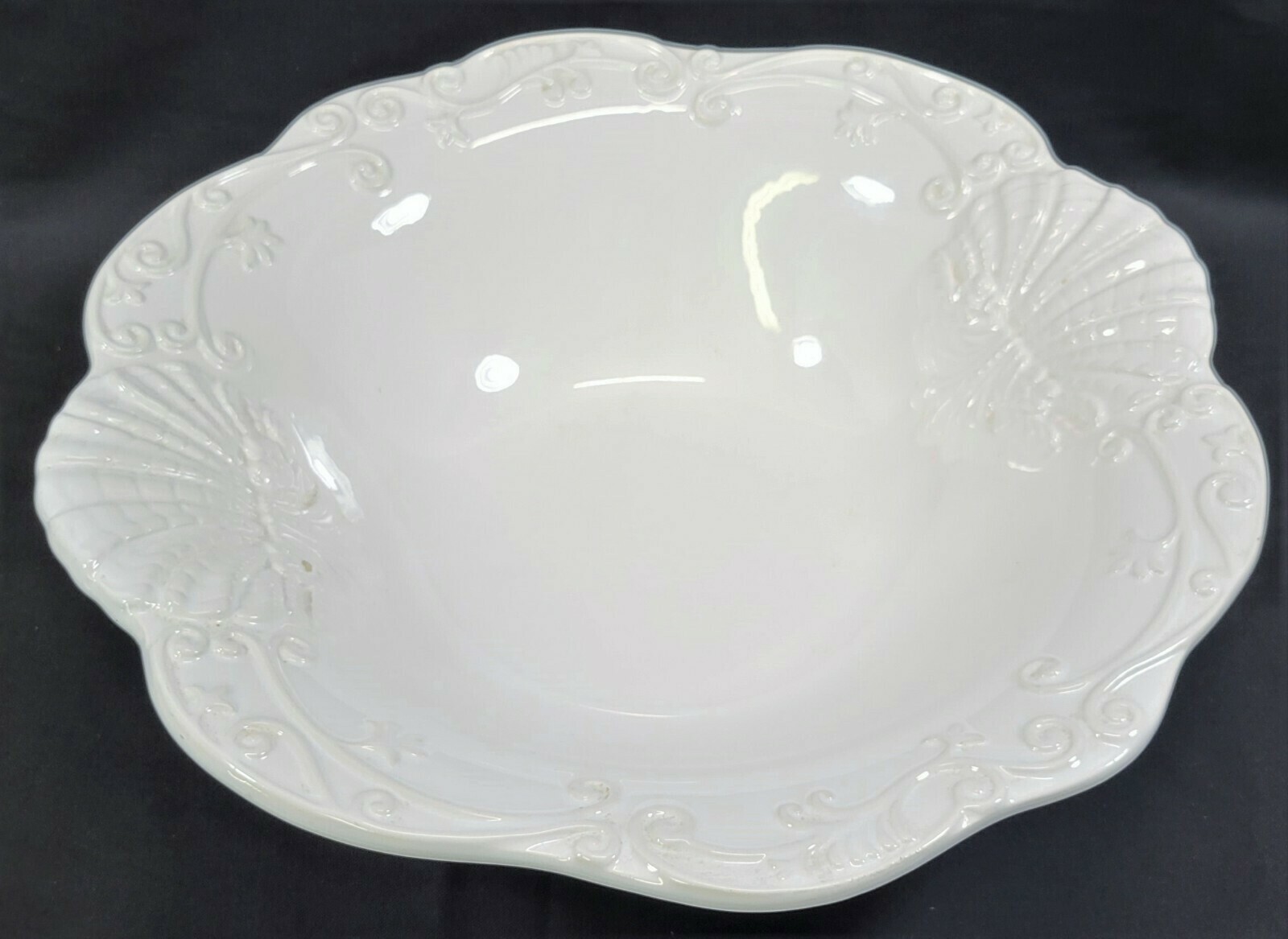 I) Ceriart Large White Porcelain 13" Round Serving Fruit Bowl Platter Portugal