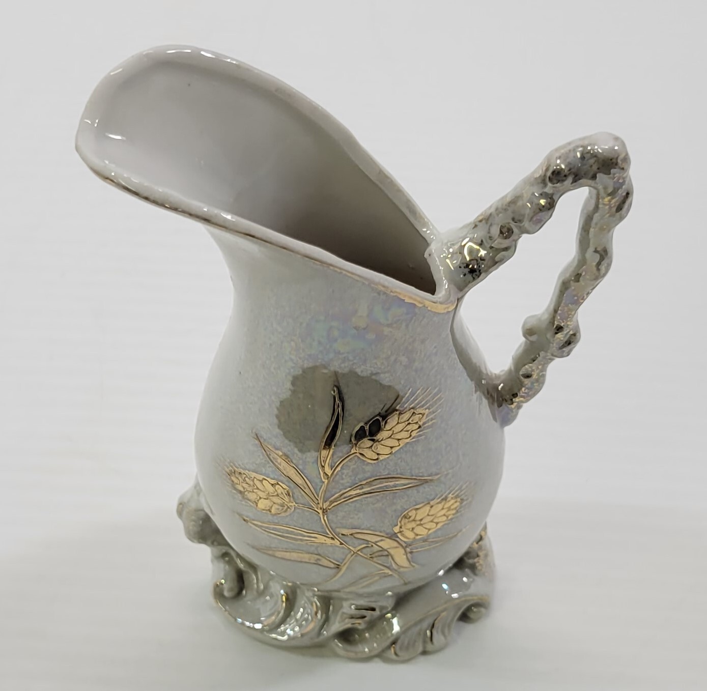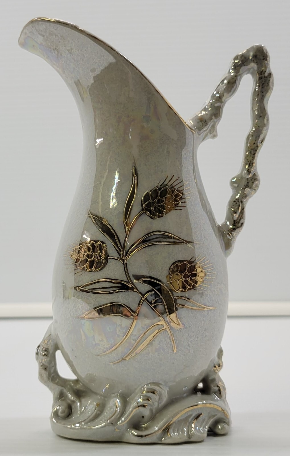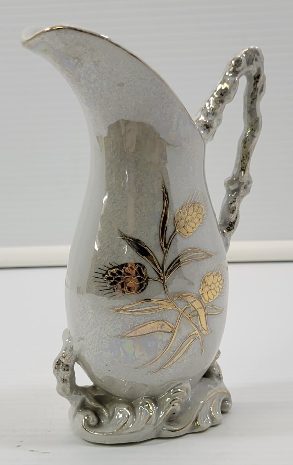 Vintage Hand Painted Japan Betson Floral Ewer Pitcher Jug Vase White Gold
