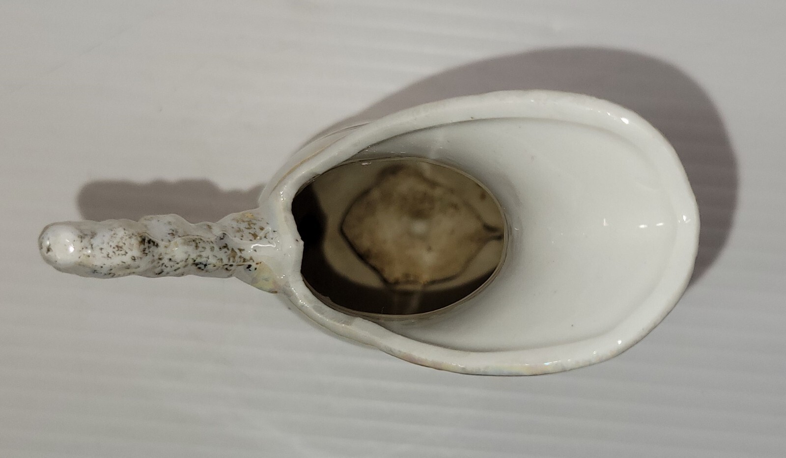 Measures about 6-1/2" high and about 4" wide across from handle to spout