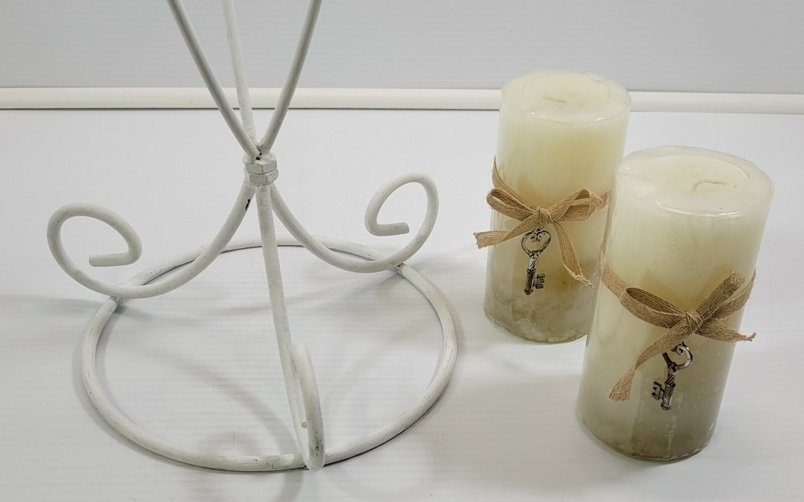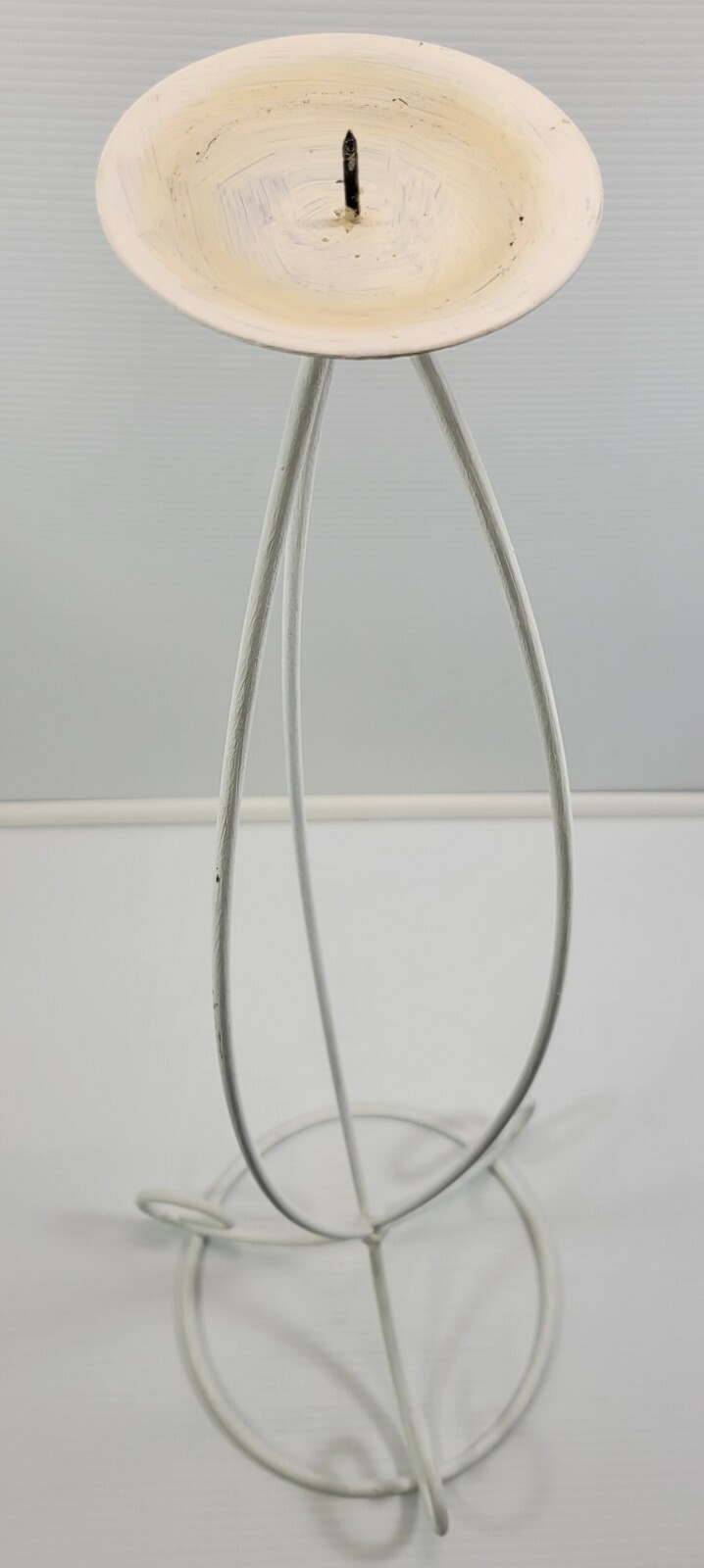 *MM) Set of 2 Tall White Metal Floor Candle Stands Pier 1 Imports 30" & 24"