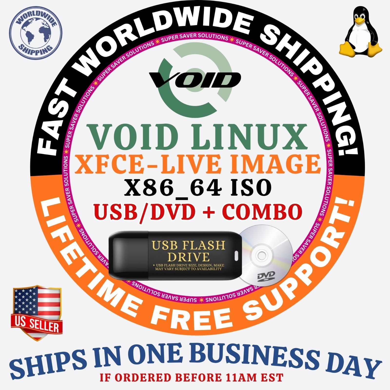 VOID LINUX OS | BASE XFCE | LIVE IMAGE | DVD, USB, COMBOS | SHIPS FAST
