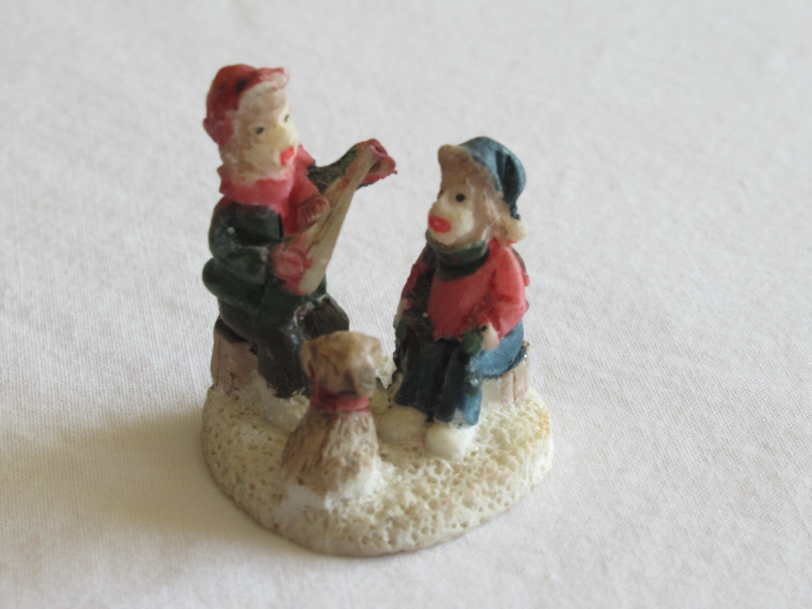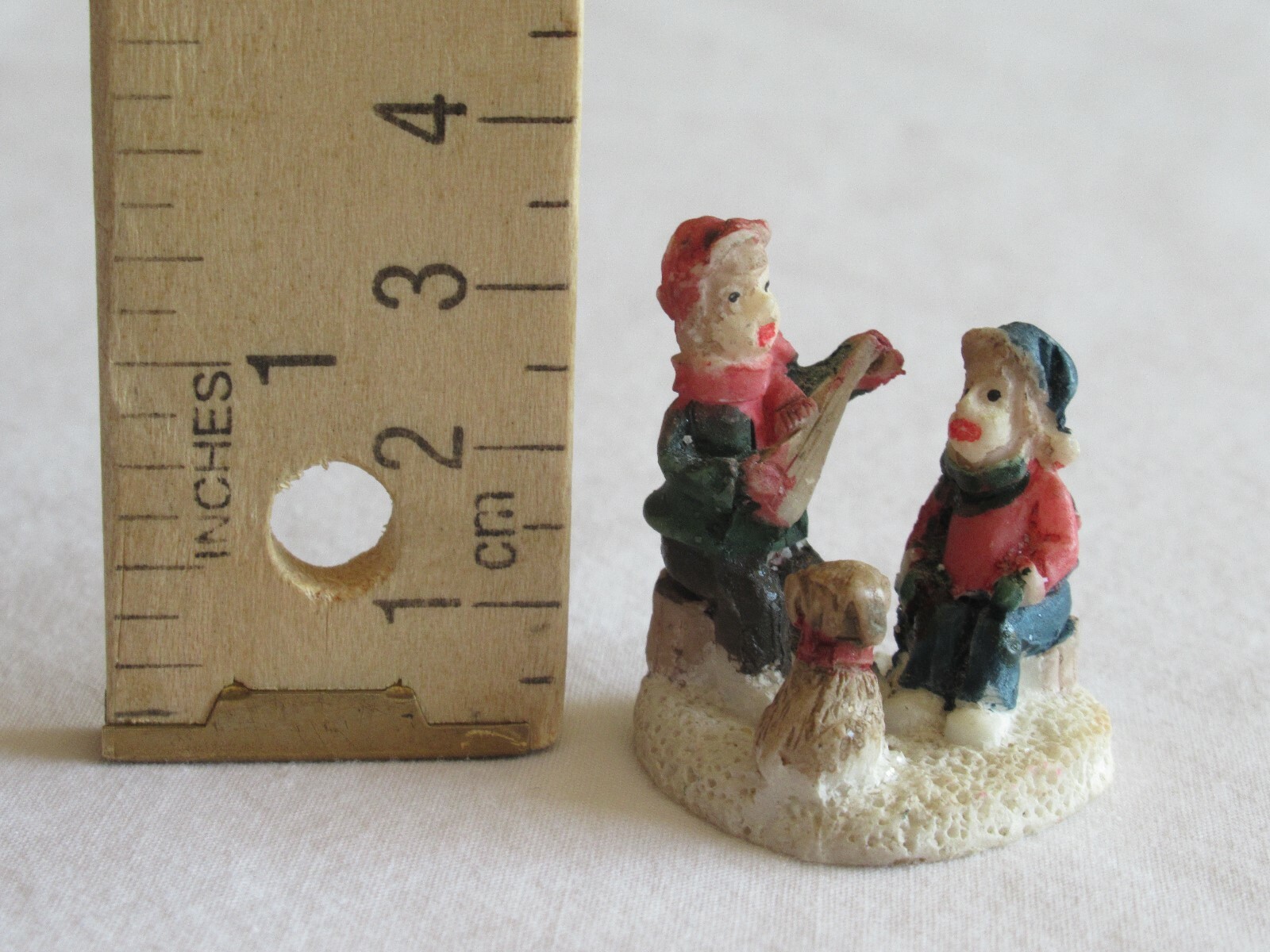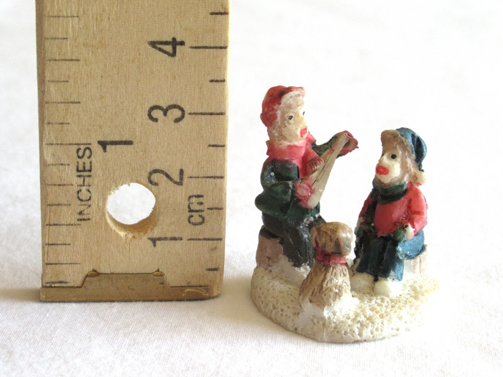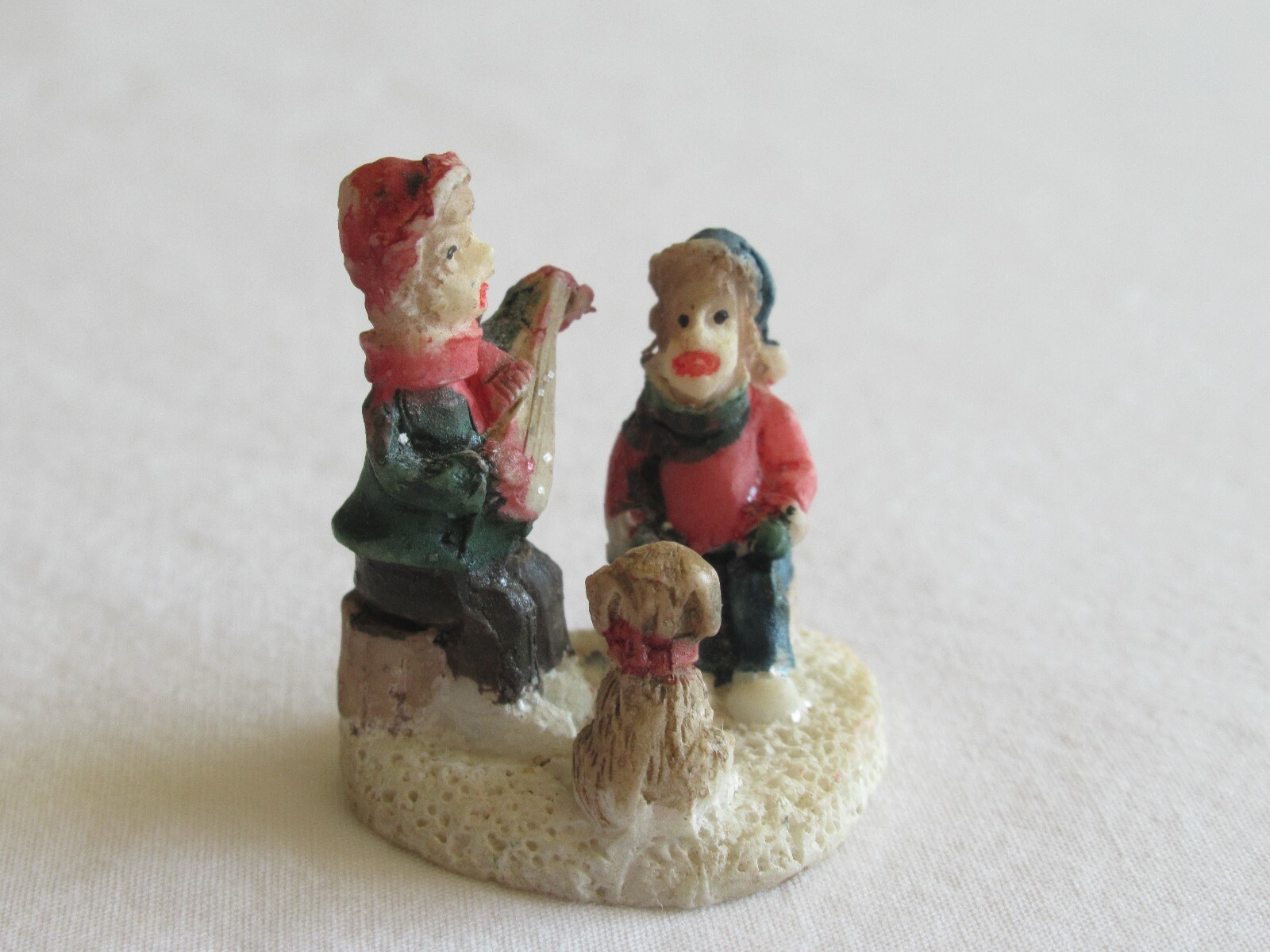 Christmas Village Figurine Boys Children Brothers Puppy Music Banjo 0.8" Resin