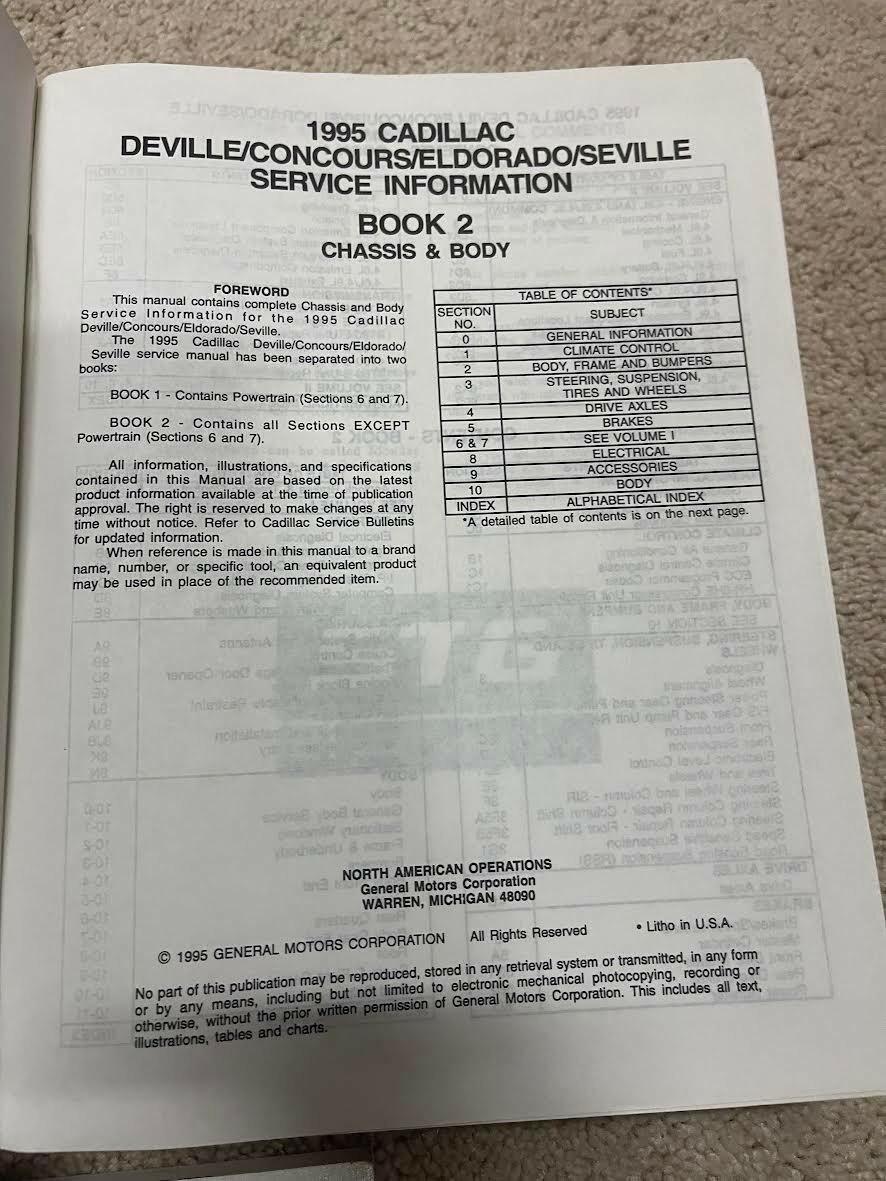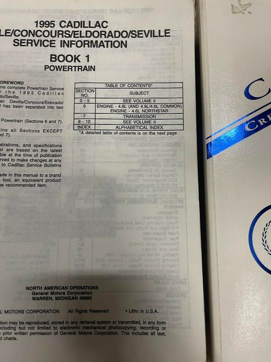 1995 Cadillac DeVille, Eldorado, Manuale di servizio Siviglia 2 Volume Set Reference Guide