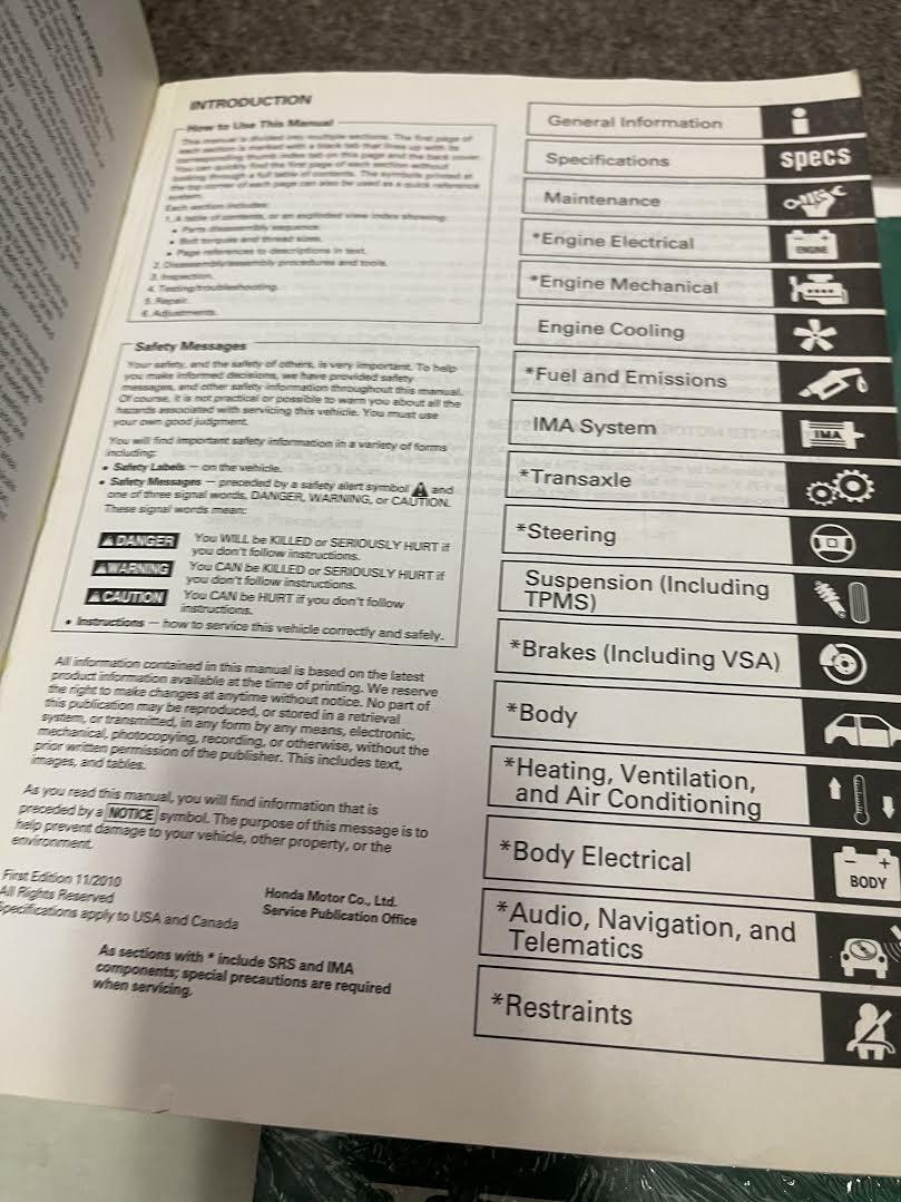 2010 2011 Honda Insight Servizio Negozio and 49 similar items