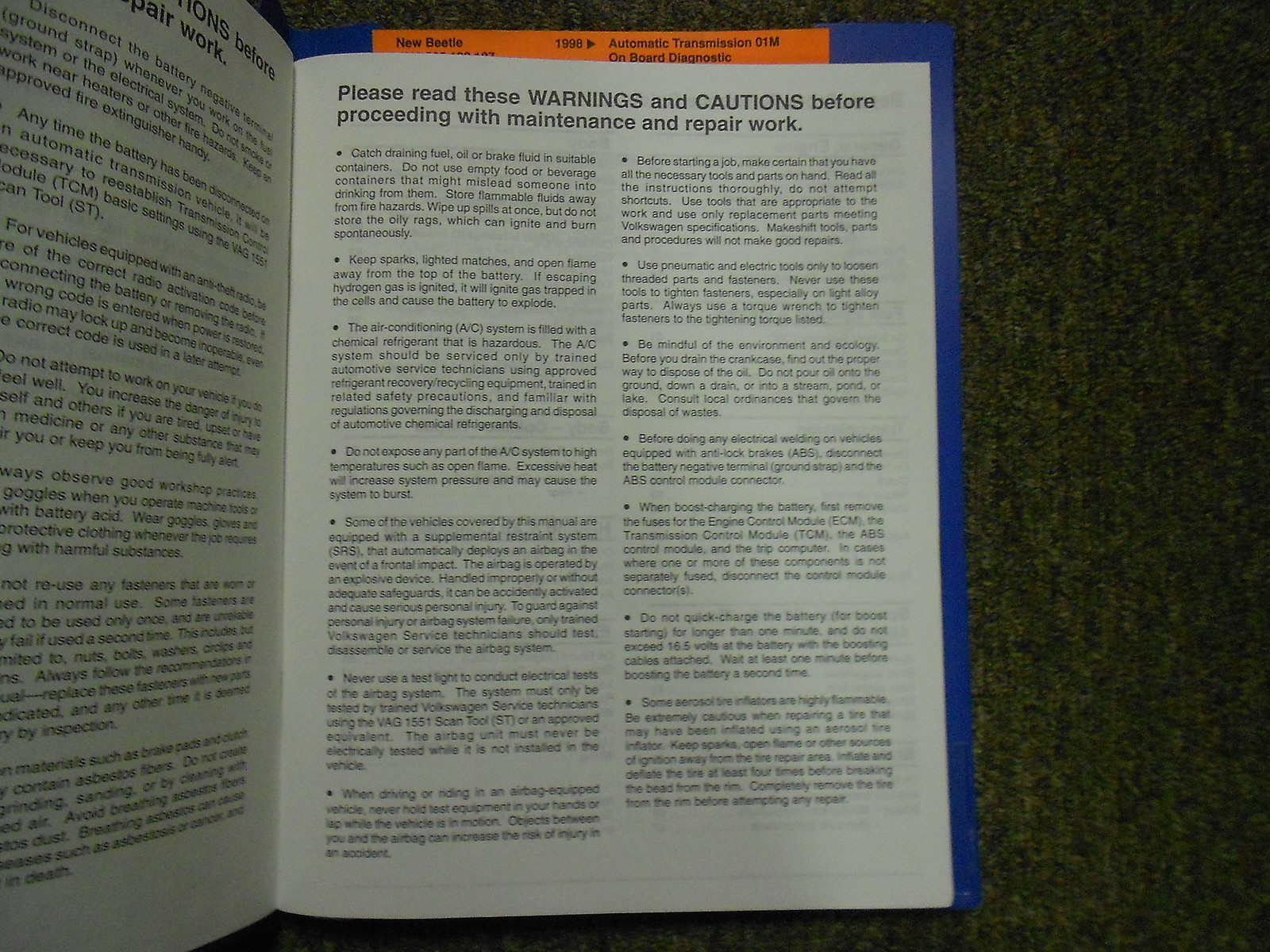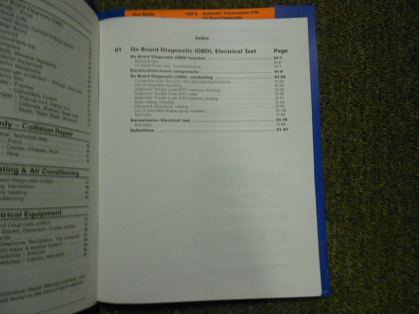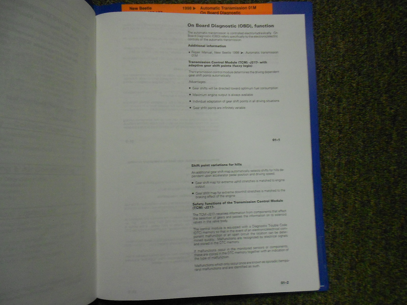 1998 99 00 01 02 Volkswagen New Beetle Automatic Transmission 01M On Board Diagnostic (OBD) Manual