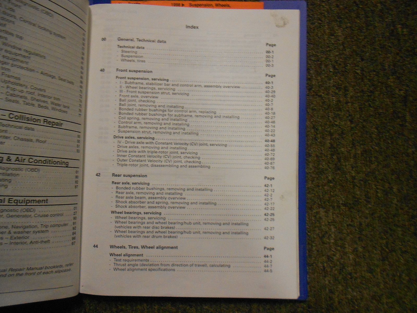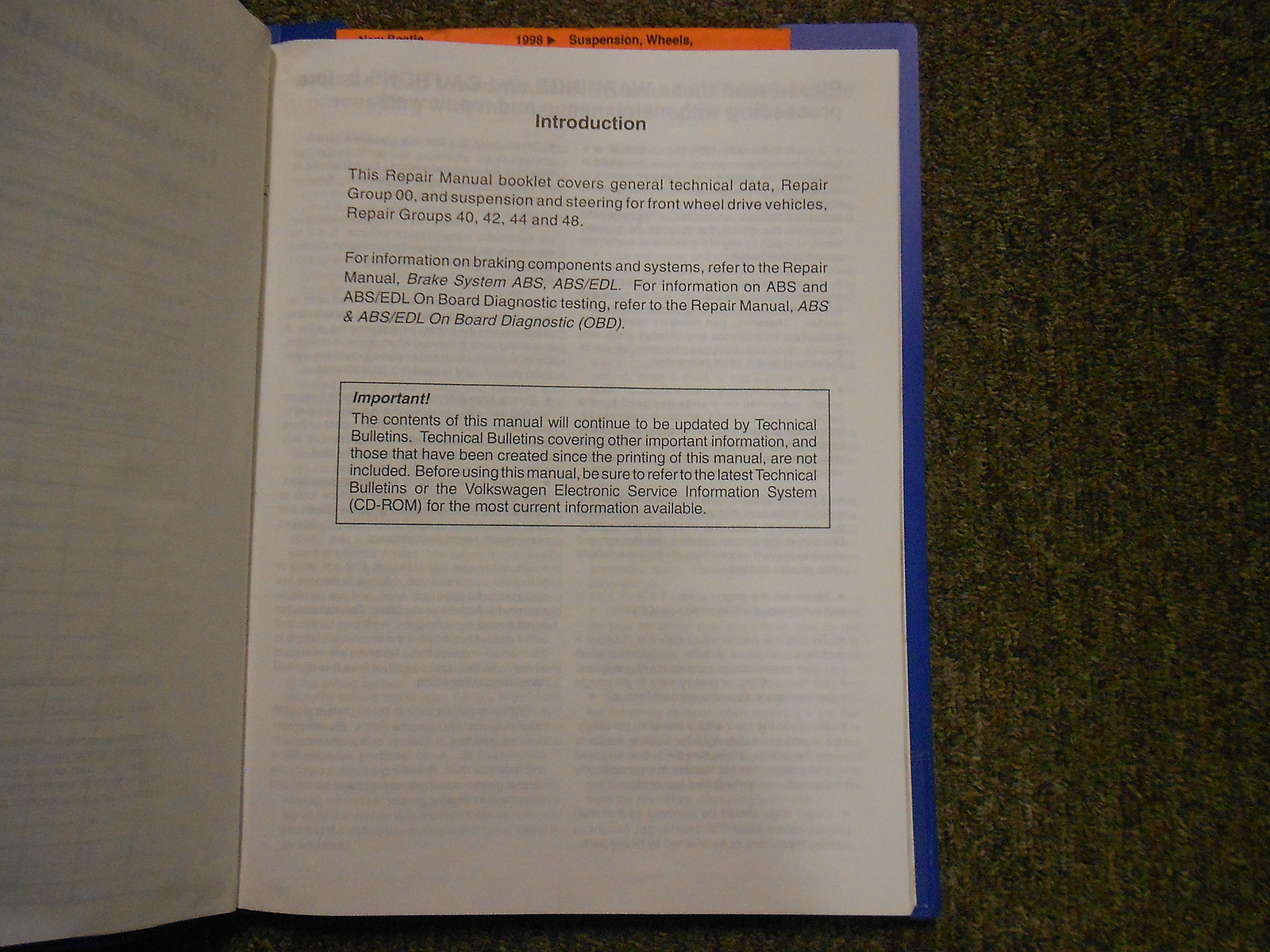 1998 99 00 01 02 Volkswagen New Beetle Suspension, Wheels, Steering Manual
