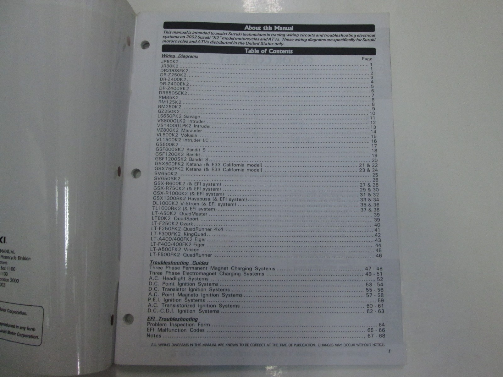 2002 Suzuki Motorcycle & ATV Wiring Diagram Manual Models K2 FACTORY OEM BOOK 01