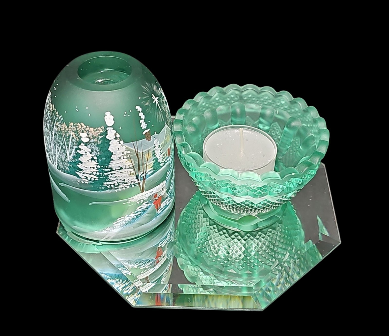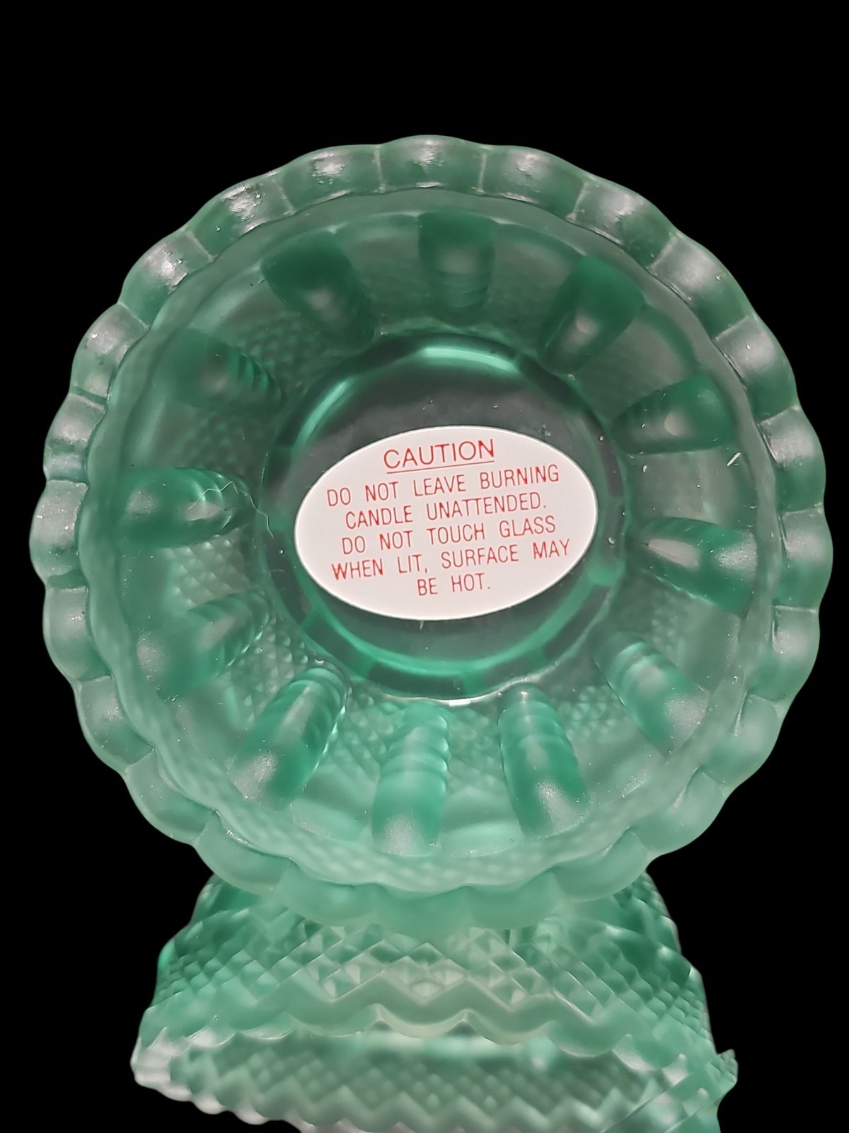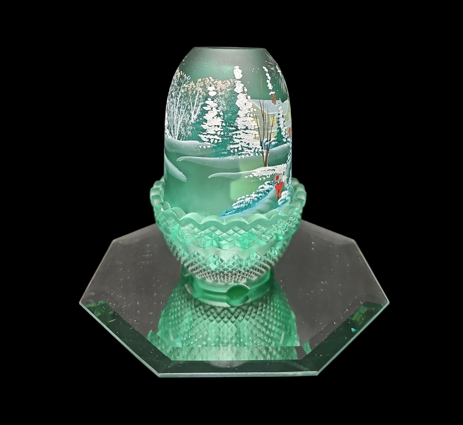 This is a hard-to-find Fenton Limited Edition Green Satin Fairy Light from the 1995 Christmas Star Series.