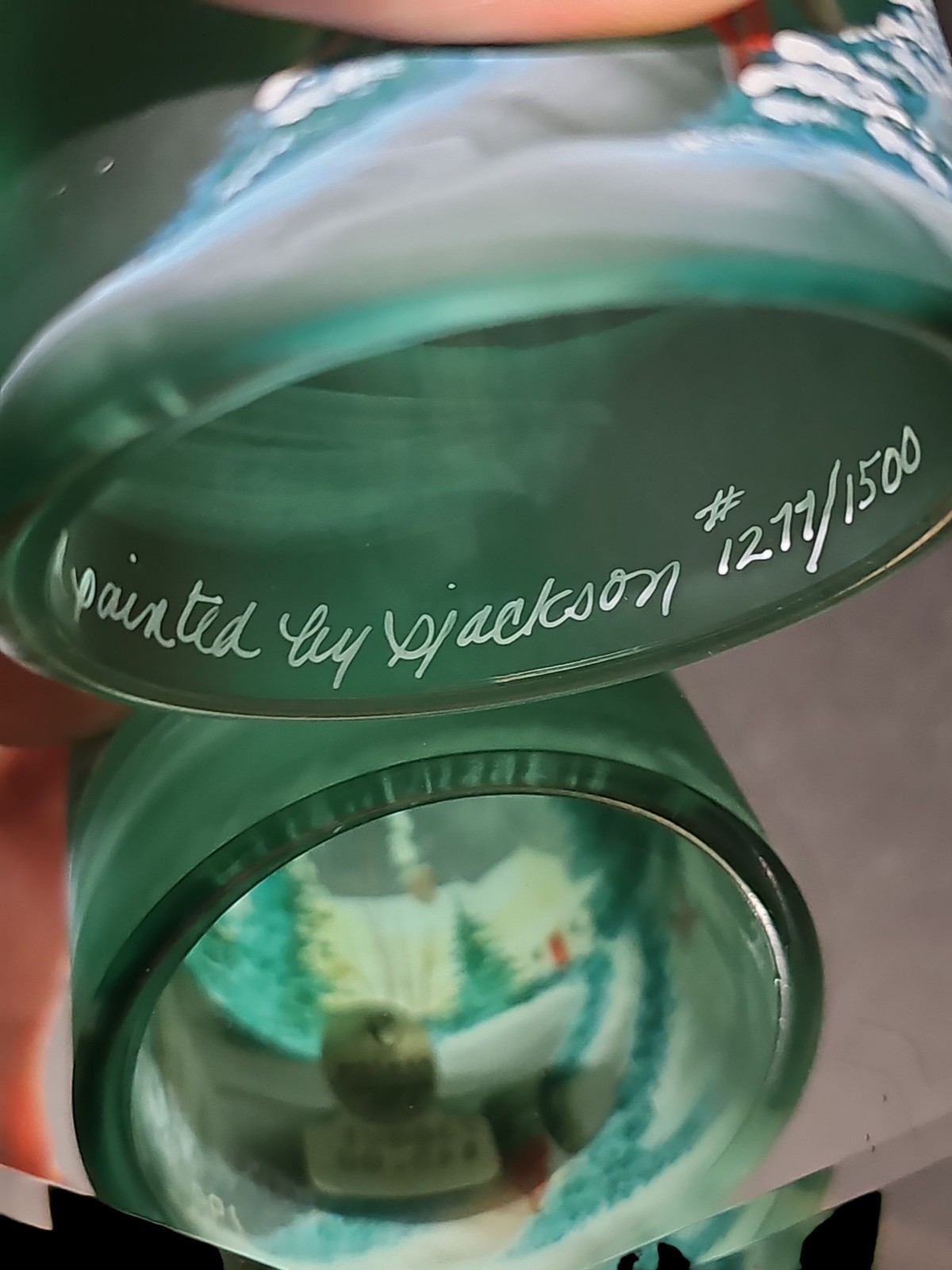 It is #1277 of only 1500 made, titled ?Our Home is Blessed?, and features a detailed hand-painted winter scene with a cozy home, snow-covered evergreens, red cardinal, mailbox with holiday bow, and the shining Christmas star above.