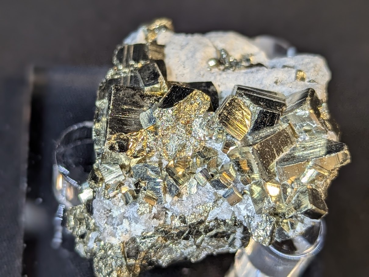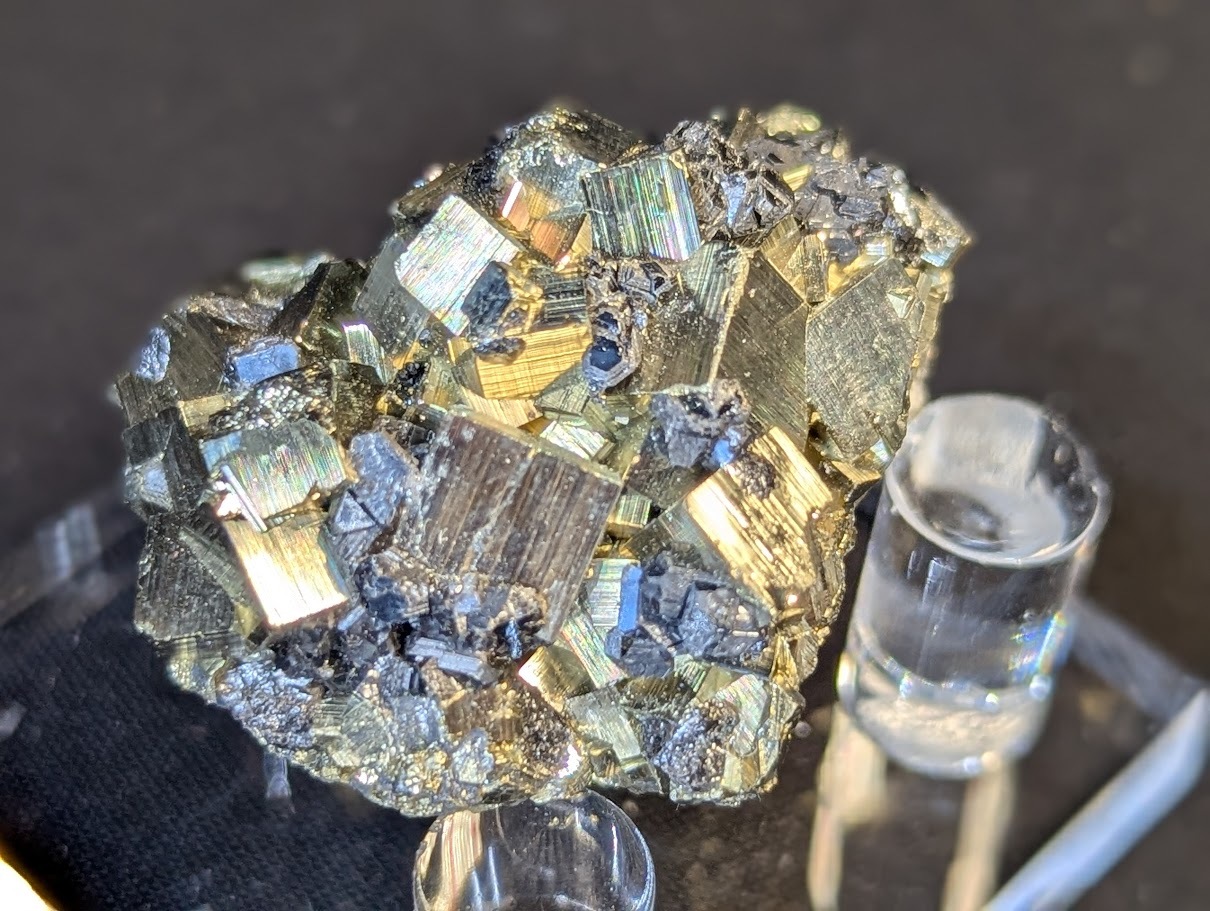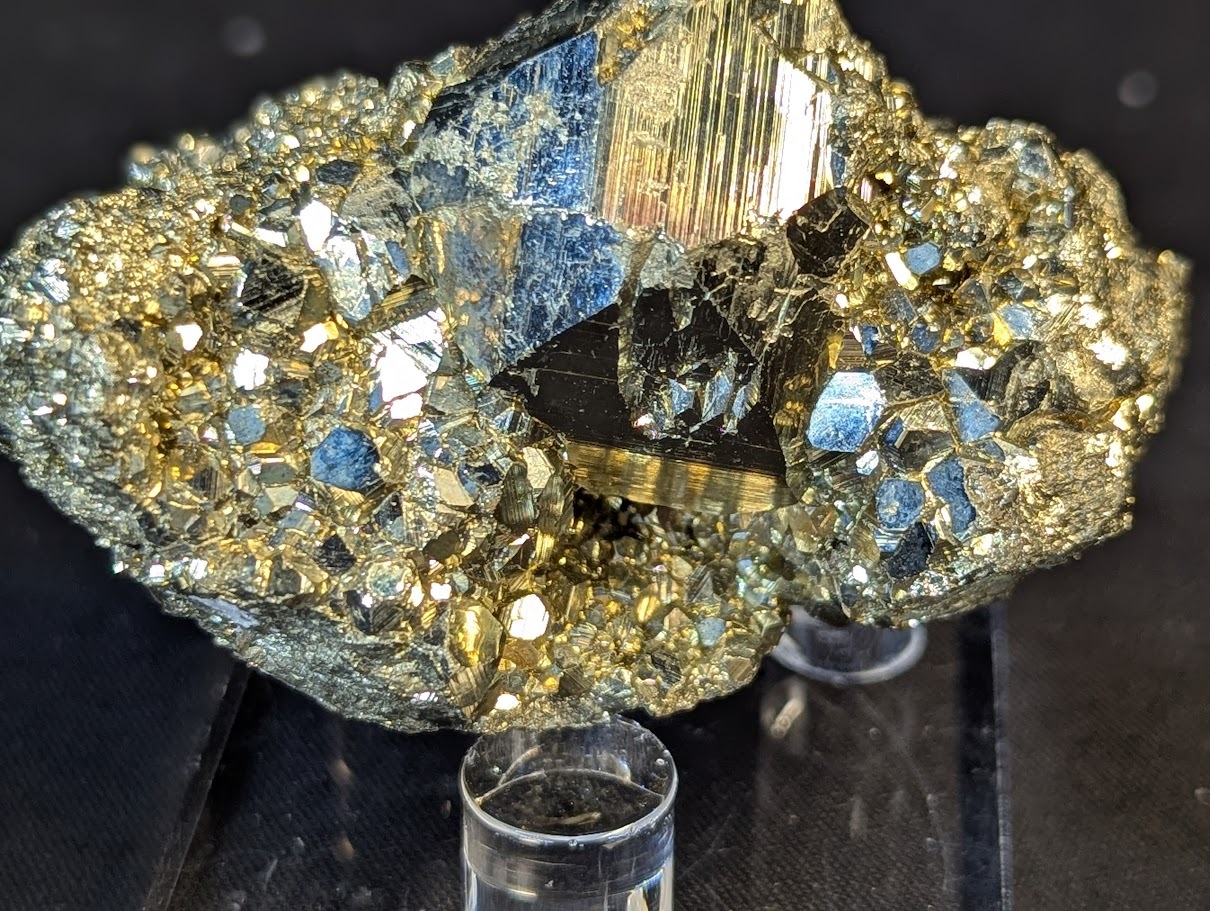 The clusters formations may have either one or combination of small or big octahedron, and pyritohedron and cubic crystals with bright glistening, striated or non-striated faces.