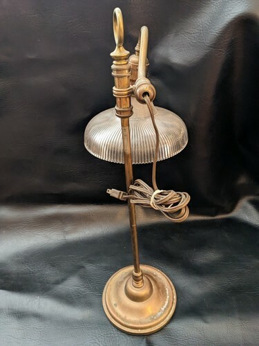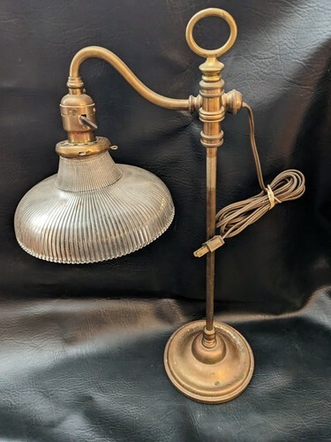 Antique Réglable Table Bureau Lampe Français Fonte Laiton D Nouveau Verre Nuance