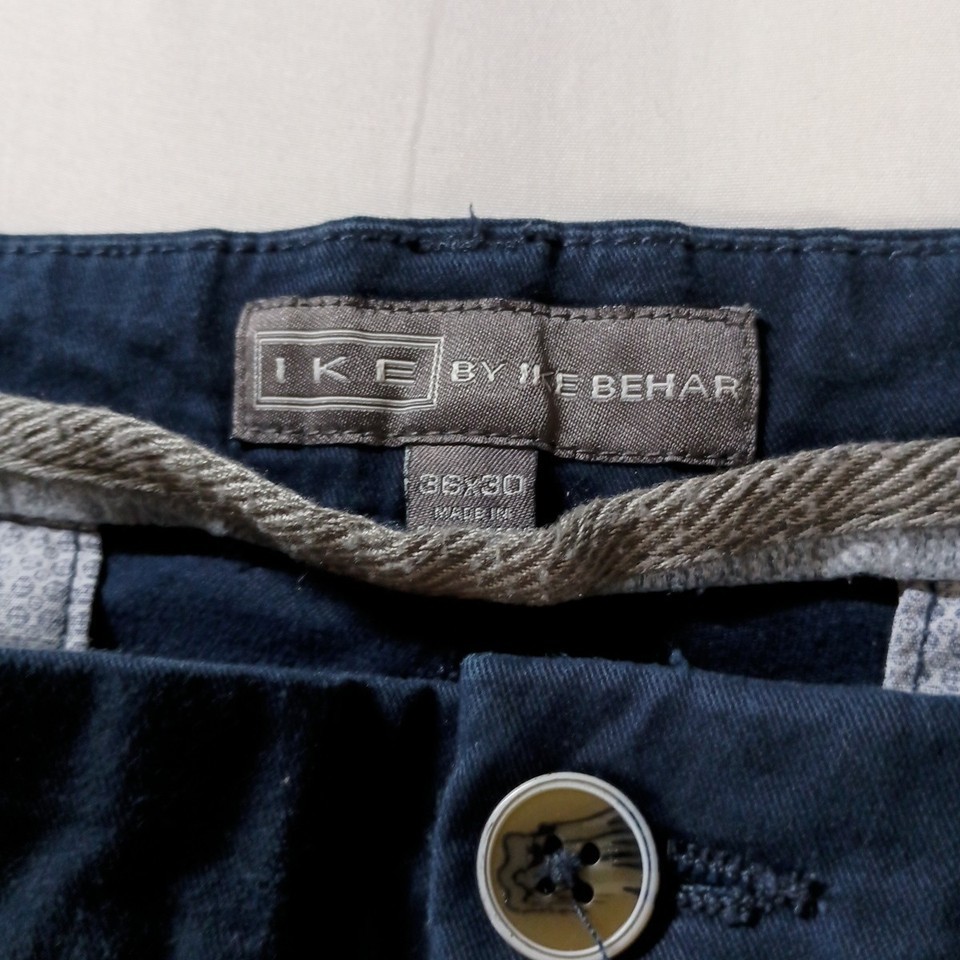 IKE By Ike Behar Straight Leg Chino Pants Men's 36x30 Blue Flat Front Solid