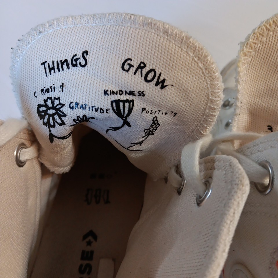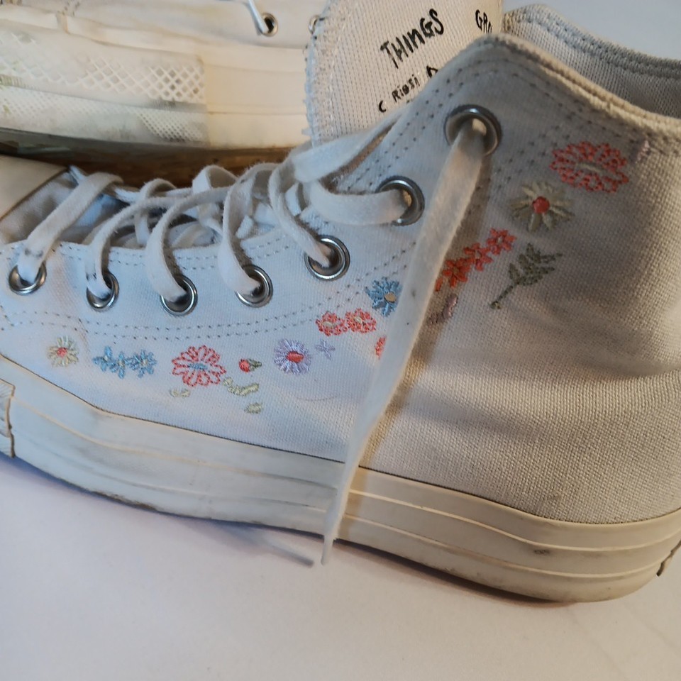 Converse All Star Hi Top Sneakers Things To Grow White Ivory Floral Sz 8 Y2k