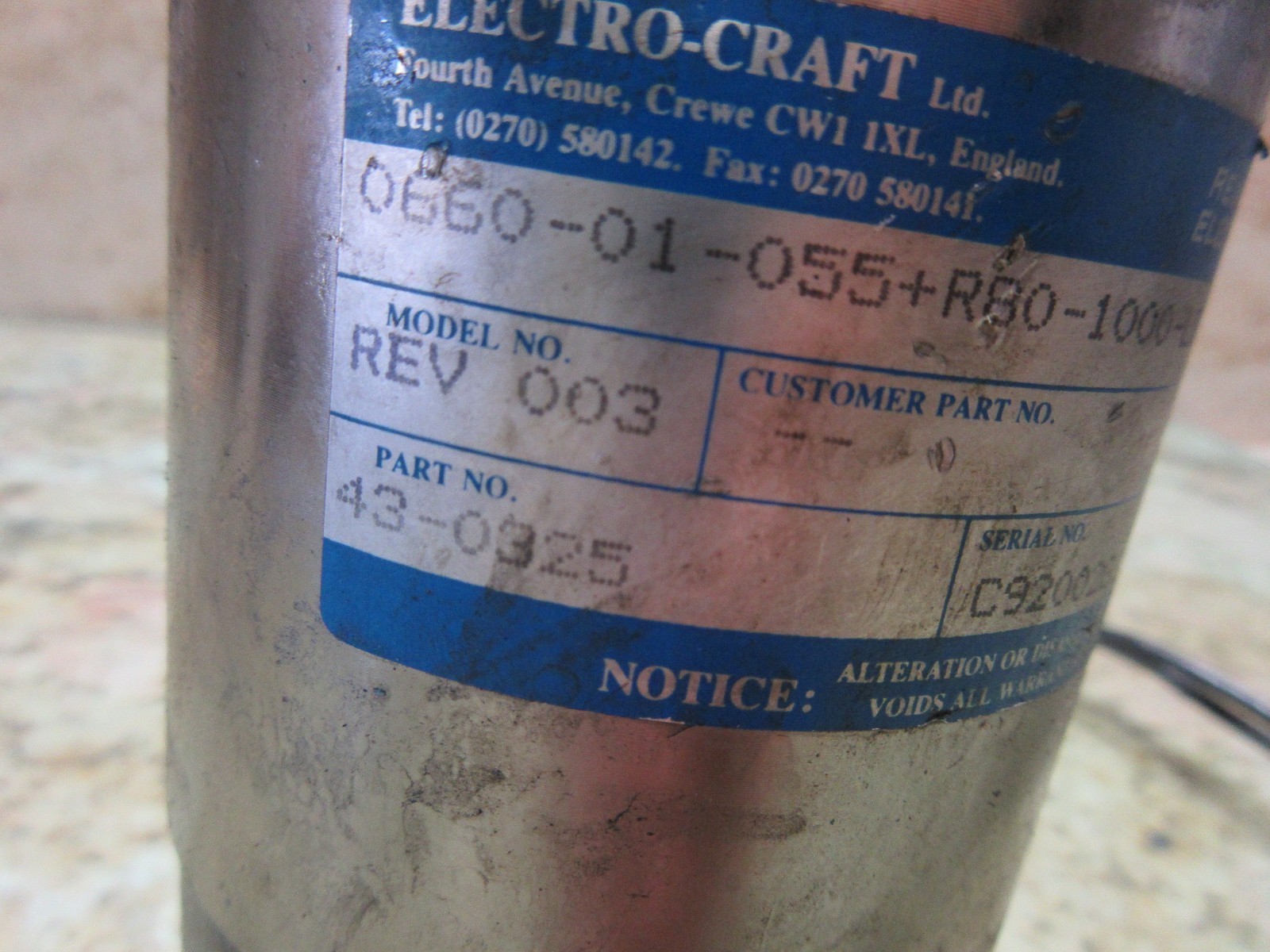 RELIANCE ELECTRO-CRAFT MOTOR 0660-01-055+R80-1000-LD+CONNS 43-0325 REV 003