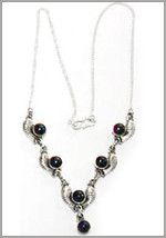 Necklace5 Con Piedras Preciosas Y Adorno Plateado Guías, Oscuro Ametyst Y Ambar