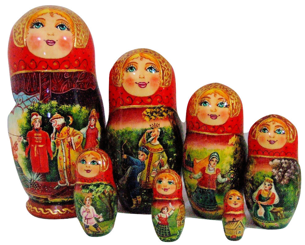 Exclusive 7pcs Russian Nesting Doll "Tale of Tsar Sultan" By L Semenova