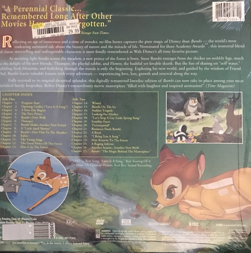 BAMBI Laserdisc LD Walt Disney Masterpiece and 49 similar items