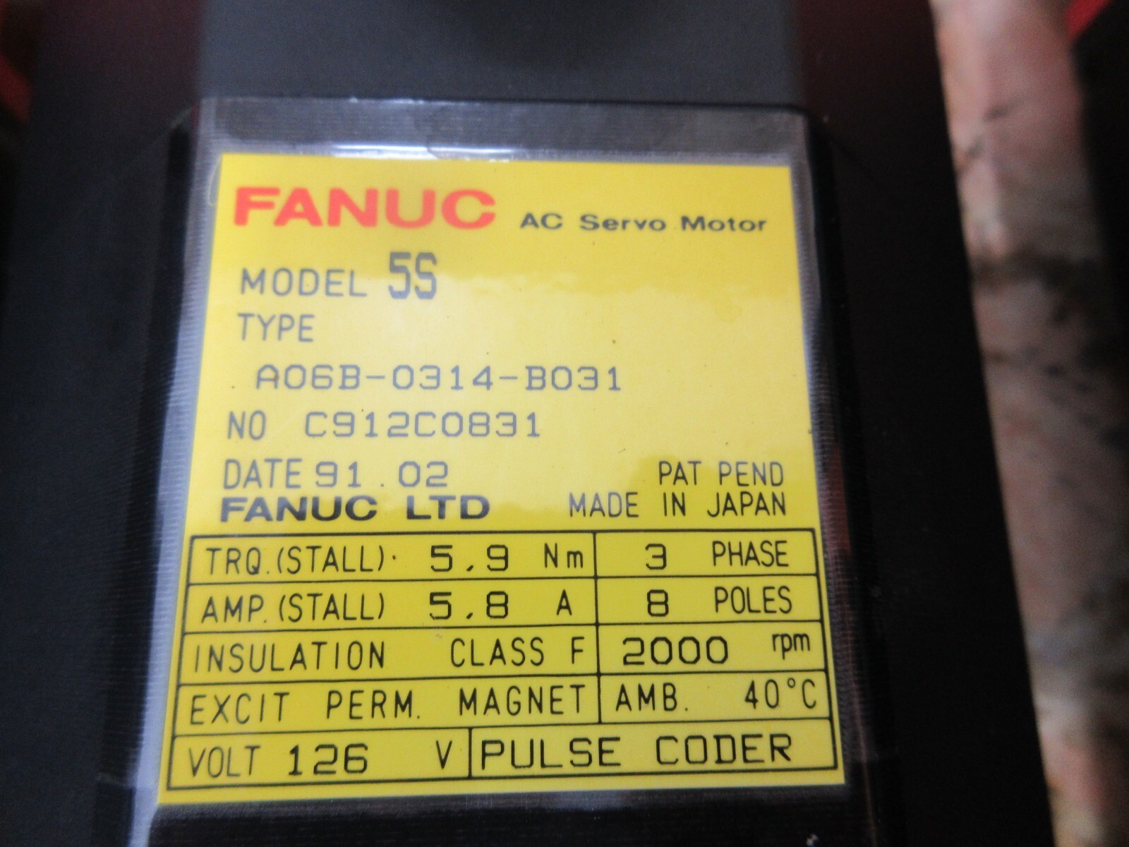 Fanuc Motor A06B-0314-B031 Warranty 4 Mos and 50 similar items