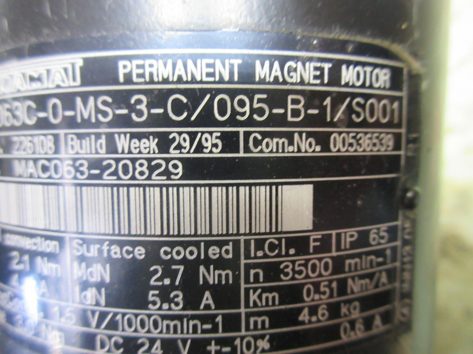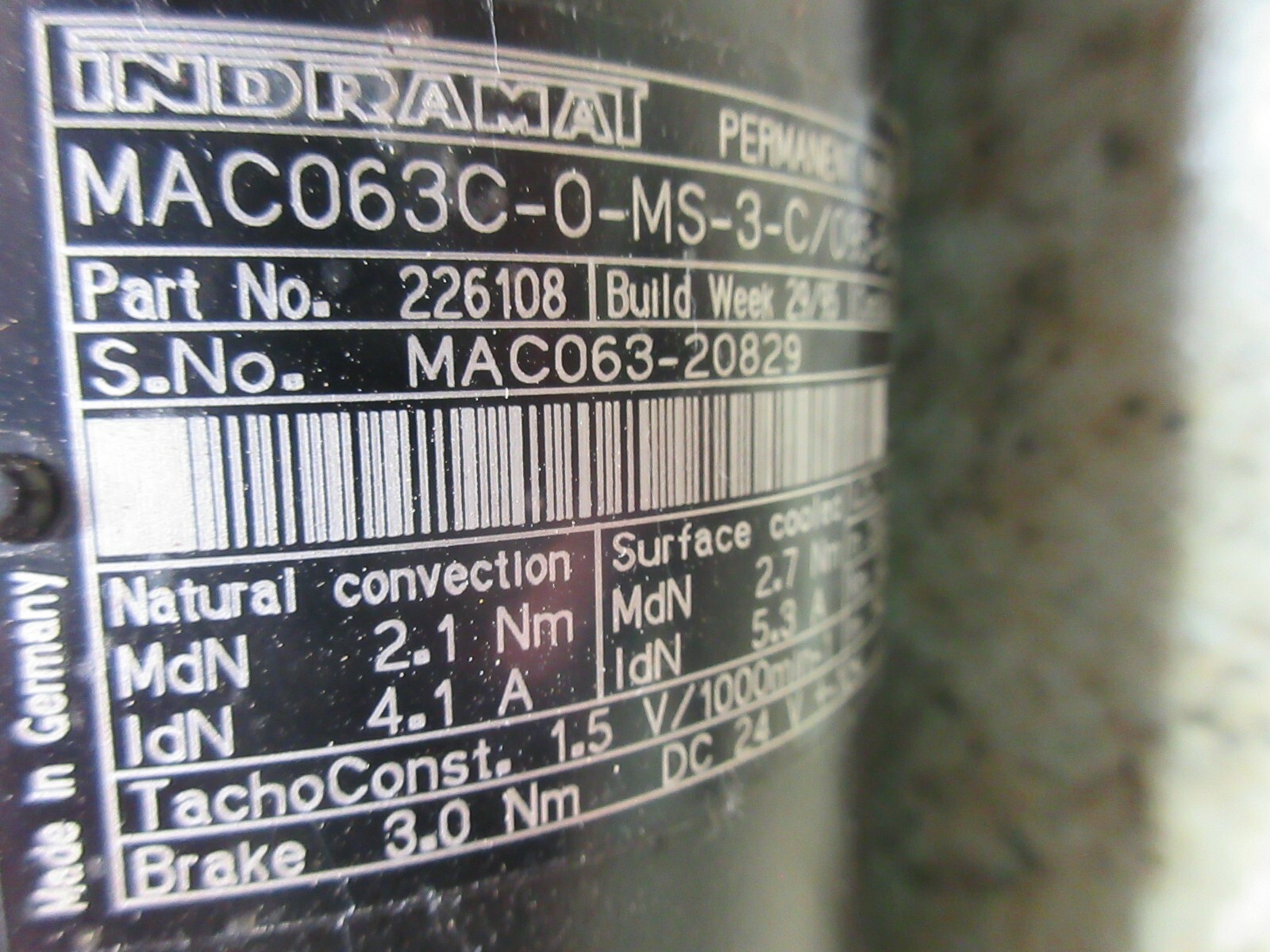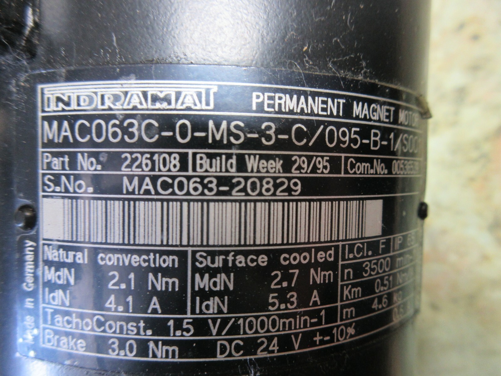INDRAMAT MAGNET MOTOR MAC063C-0-MS-3-C/095-B-1/S001 226108 BDG 6360-16S 05-1000