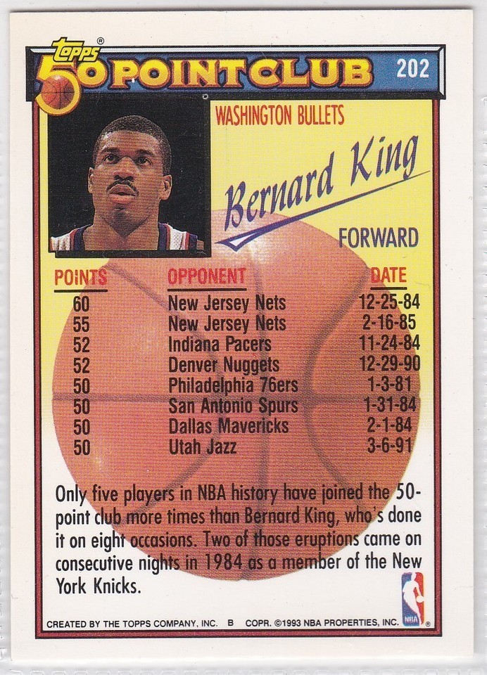 M) 1992-93 Topps Basketball Trading Card - Bernard King #202