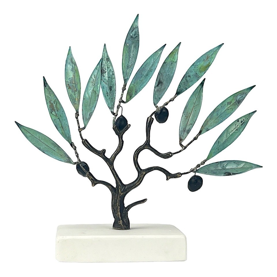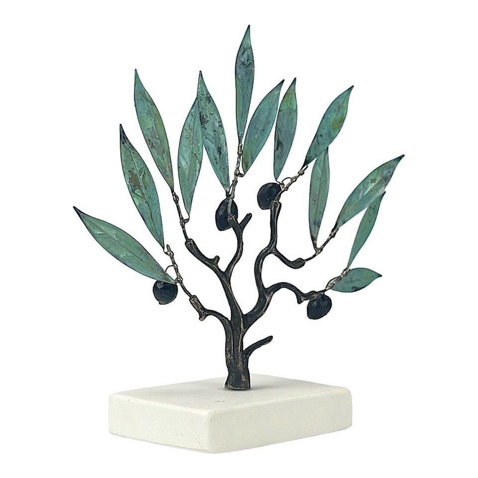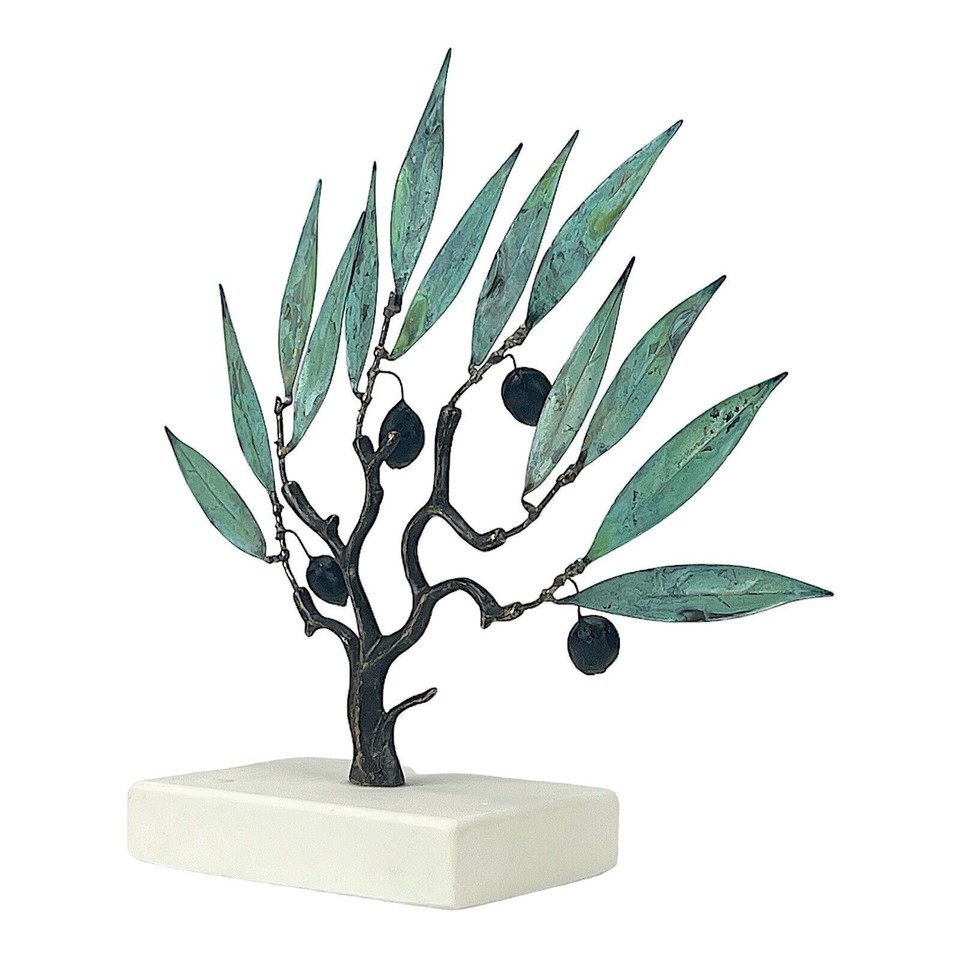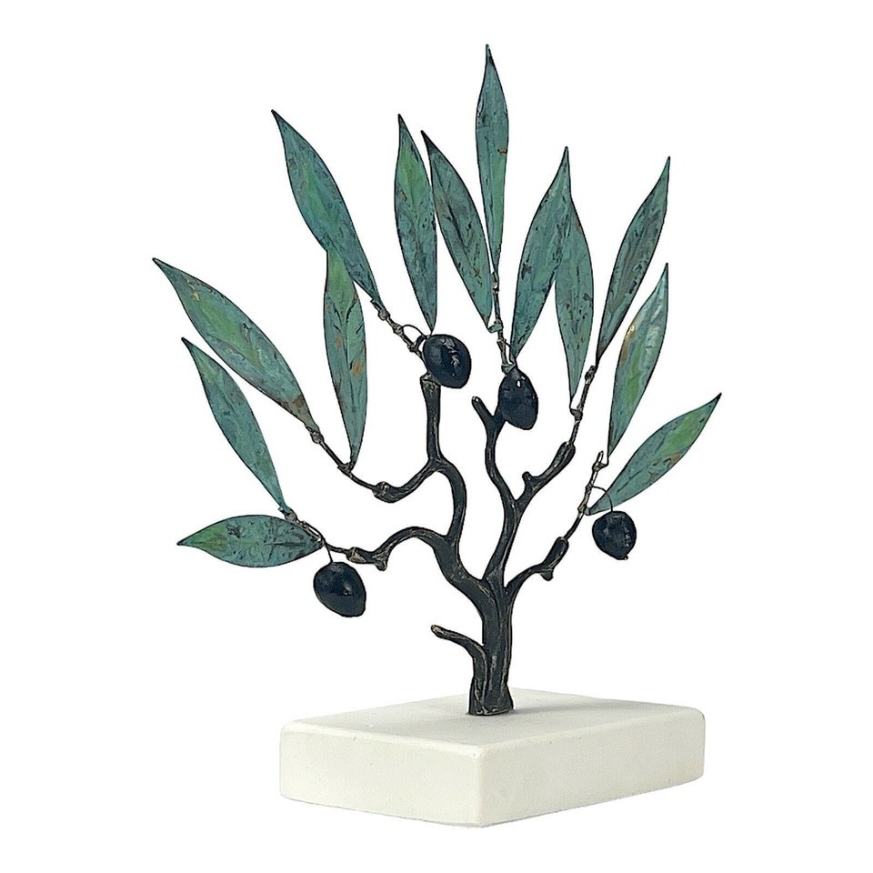 Handgefertigt in Griechenland ist diese Olivenbaum Skulptur aus Bronze, verziert mit kleinen Keramik Oliven, und montiert auf einem kultivierter Marmorsockel. Jedes Stück hat eine schützende Oberflache und zeigt sorgfaltige Handwerkskunst, die moderne sthetik mit symbolischer Bedeutung kombiniert.