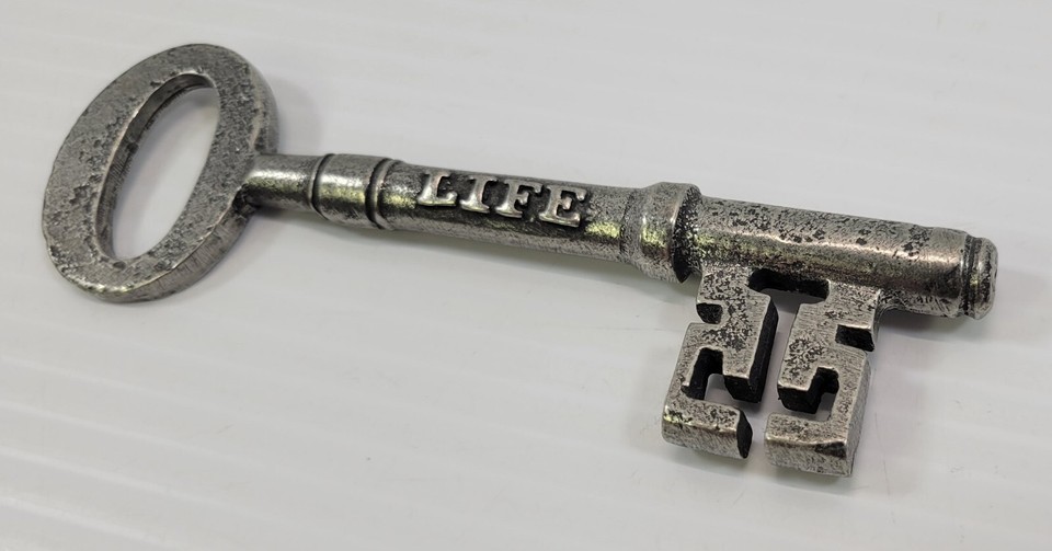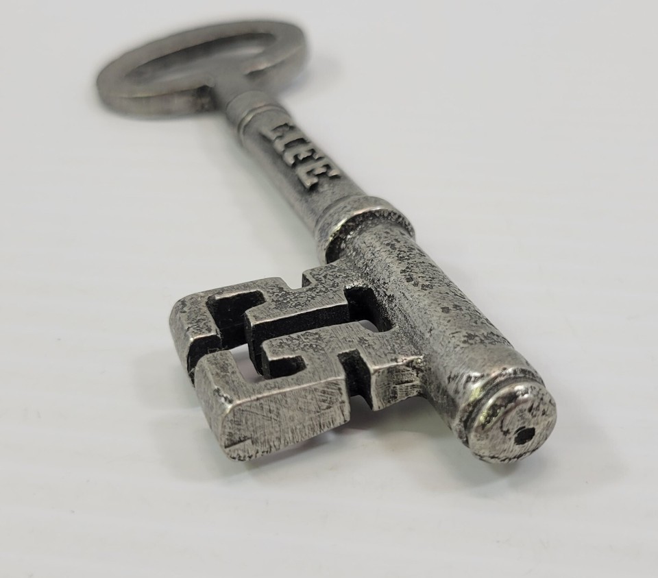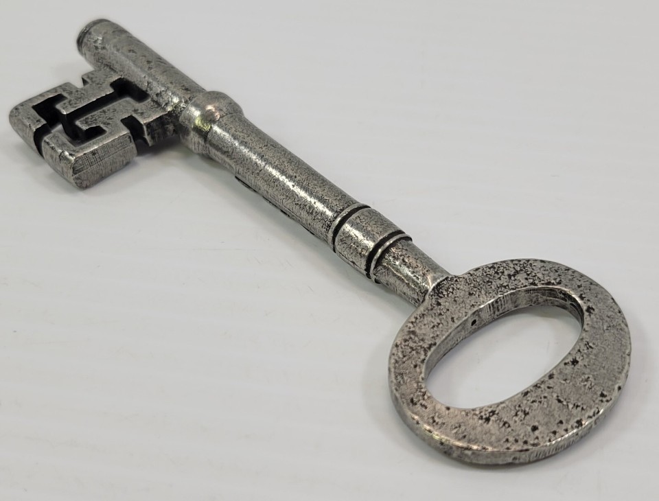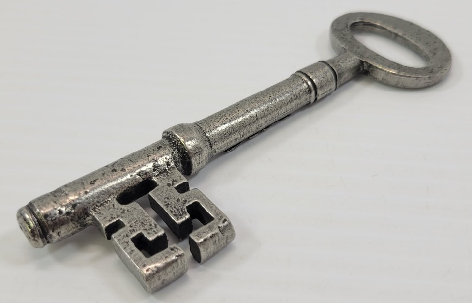 *B54) Vintage Cassiopeia Pewter Key to Life Victorian Gate Skeleton Key