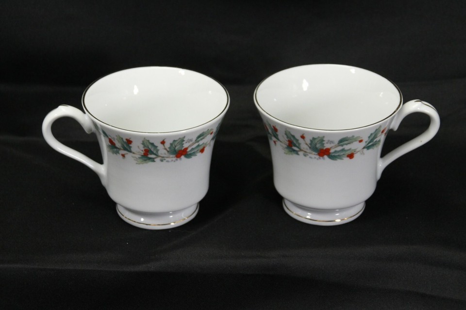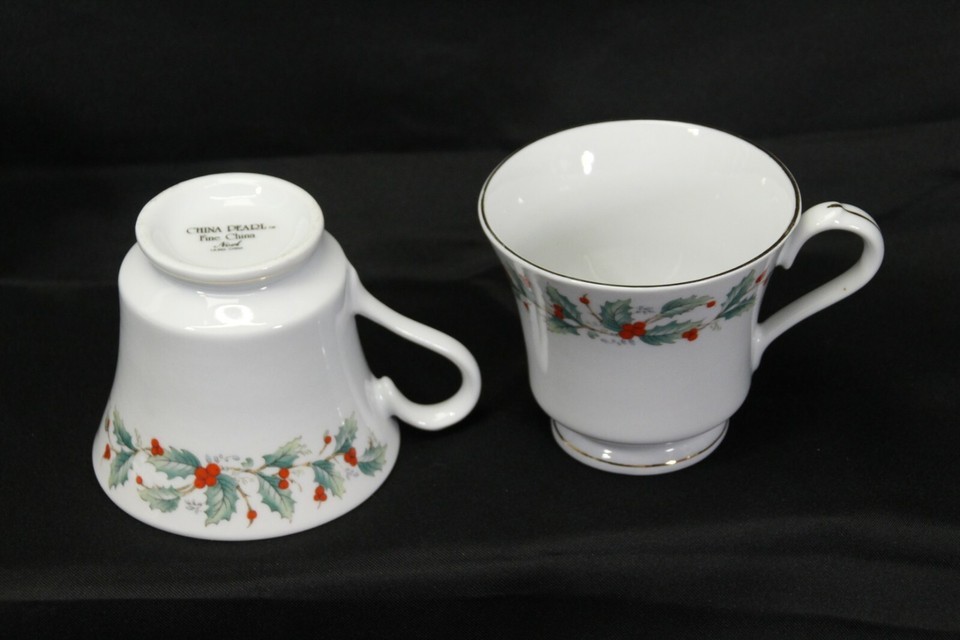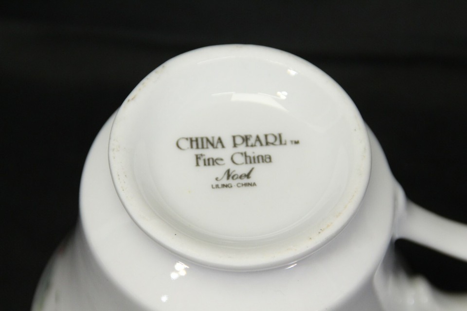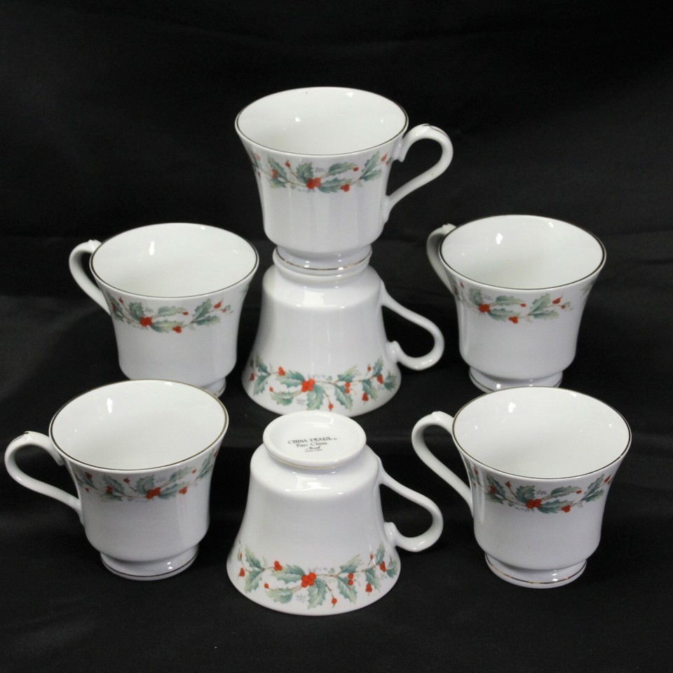 China Pearl Noel Christmas Cups Black Back Stamp Lot of 7 Xmas
