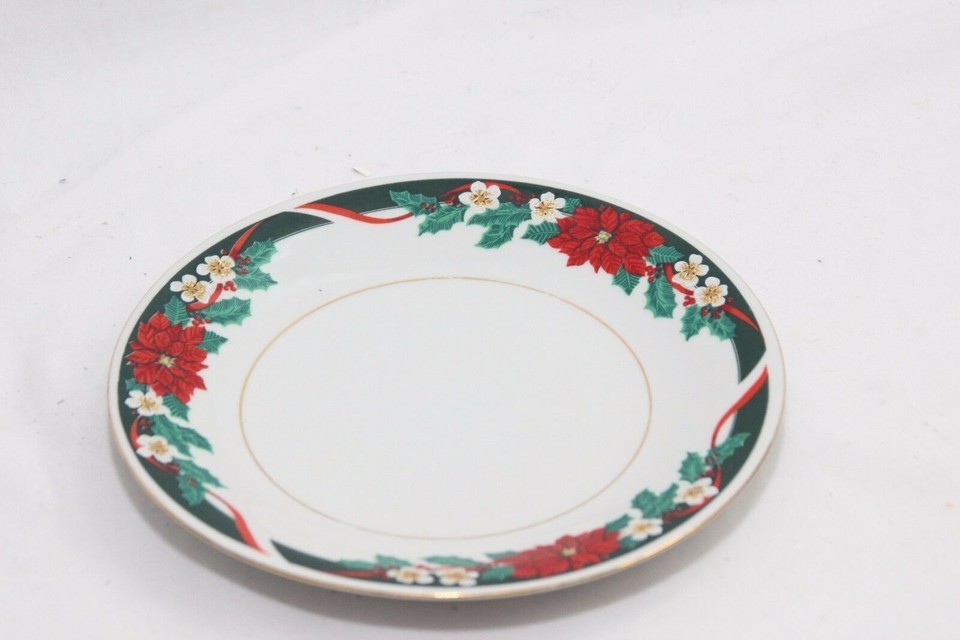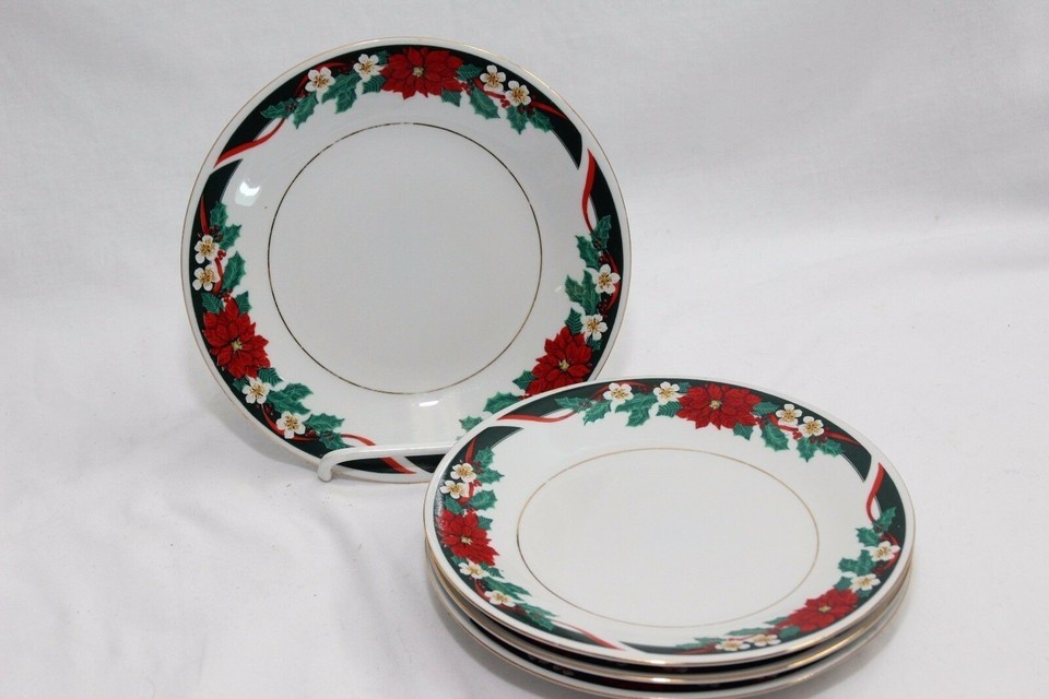 Tienshan Deck the Halls Poinsettia Salad Plates 7-1/4" Christmas Lot of 4 Xmas