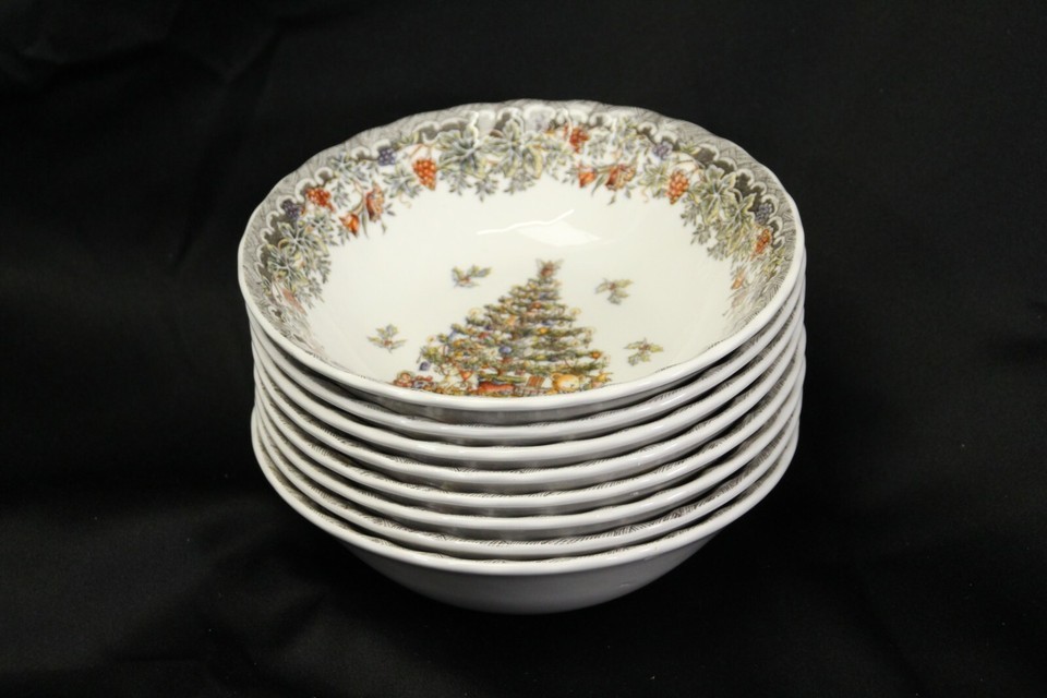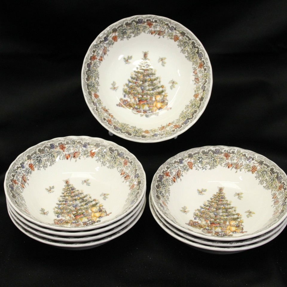 Myott Queen's Seasons Greetings Soup Bowls Christmas Tree 6-1/2" Lot of 8 Xmas