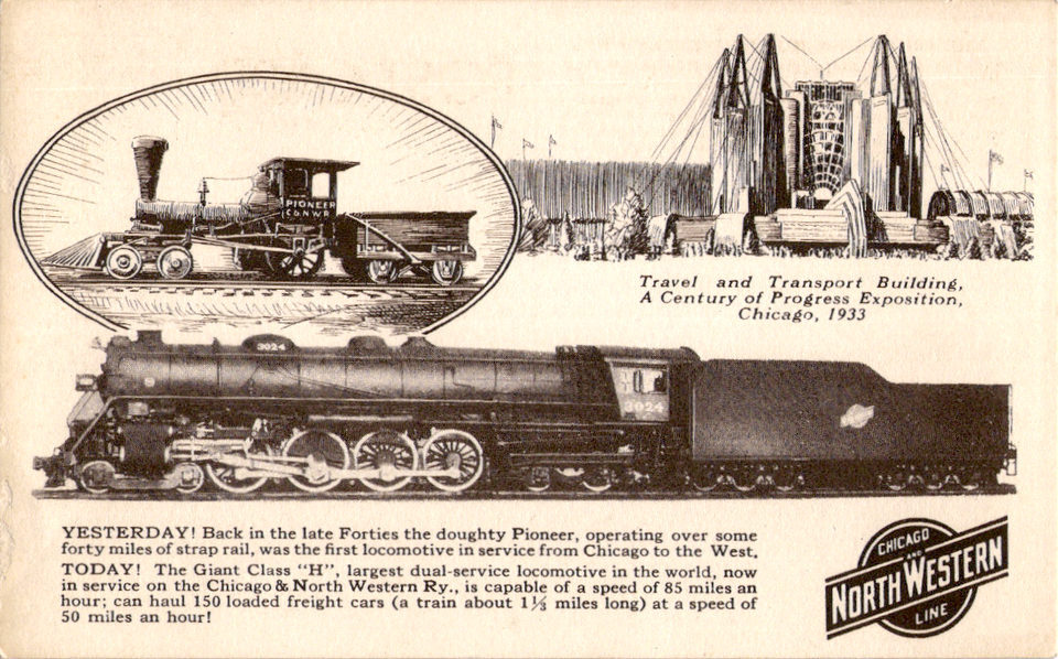 Postcard Northwestern Chicago Line Train Century of Progress Exposition 1933 HSR