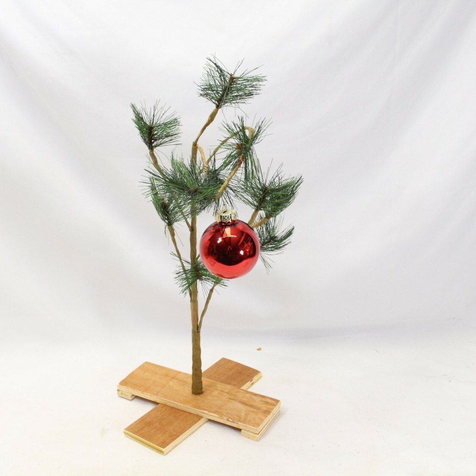 Charlie Brown Pathetic Holiday Christmas Tree With Red Ornament Peanuts Xmas