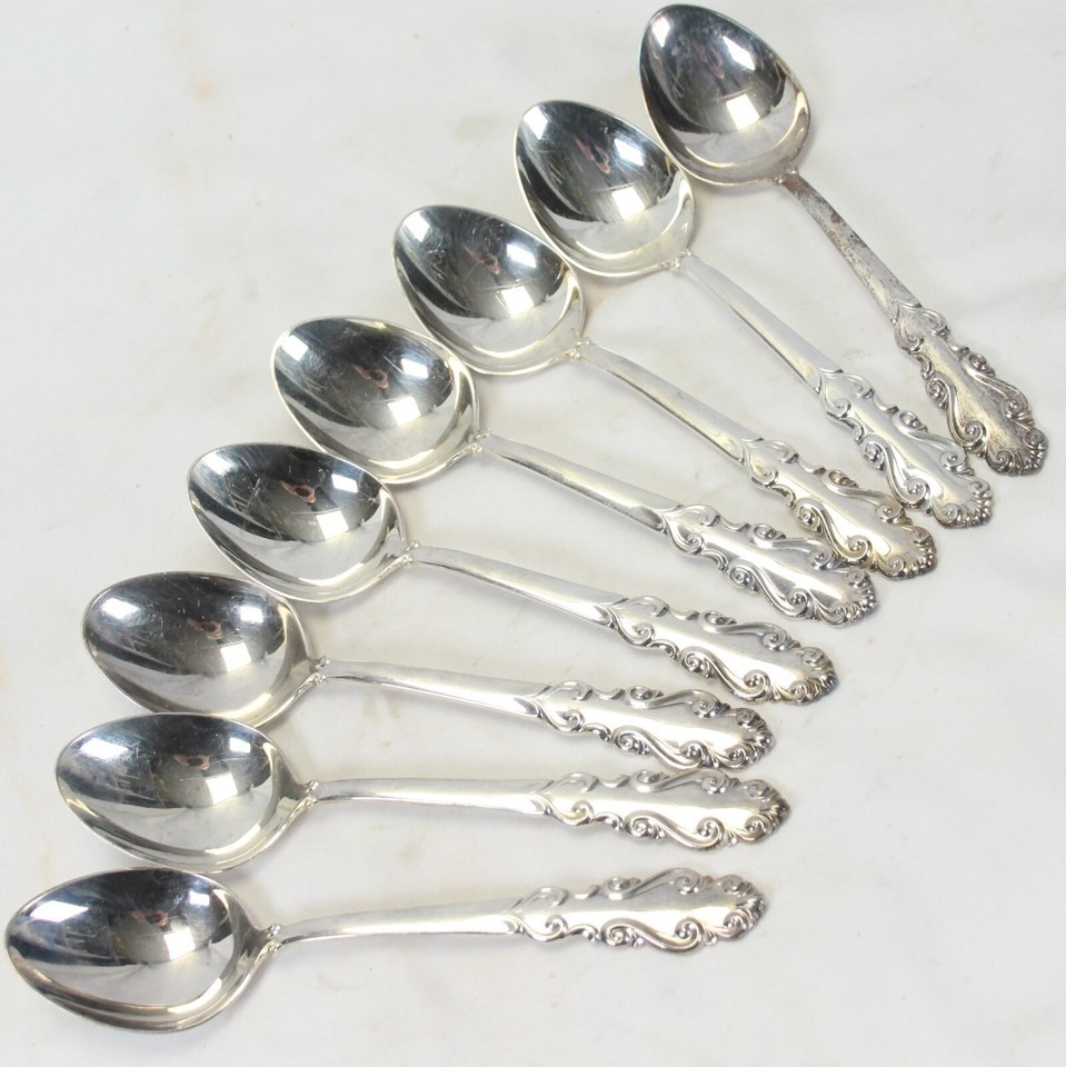Towle Antique Flutes Oval Soup Spoons Silverplate 6-7/8" Lot Of 8