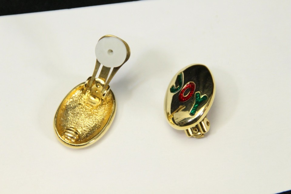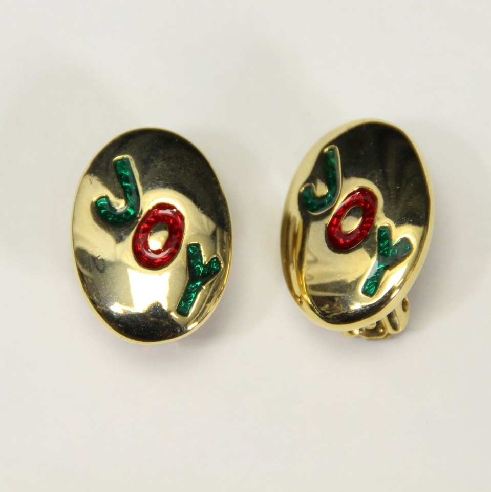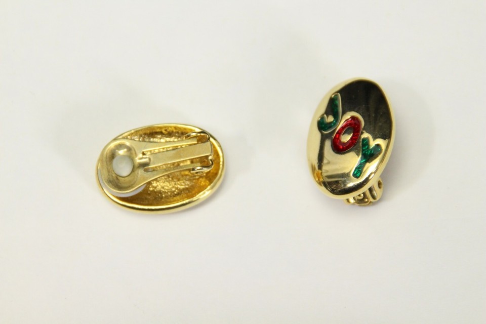 Joy Vintage Clip On Earrings Christmas 7/8" H x 5/8" W Xmas