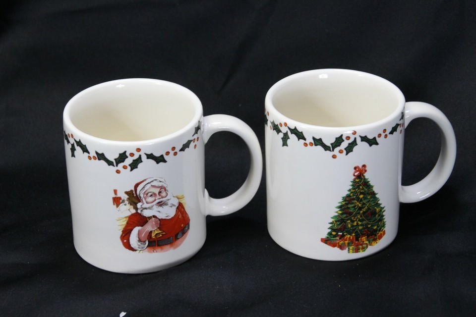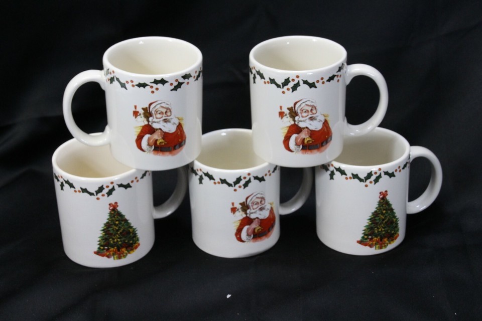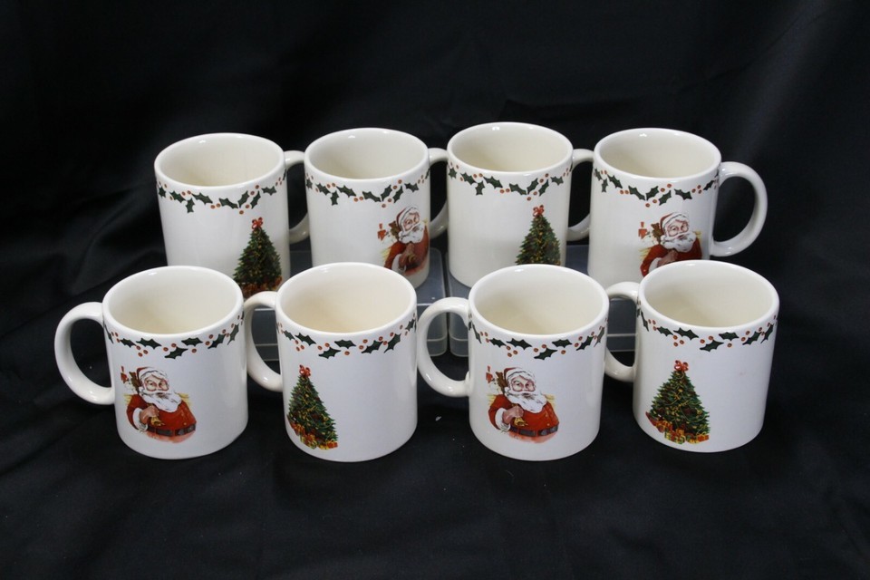Christmas Tree Holly Santa Stoneware Mugs Lot of 8 Xmas