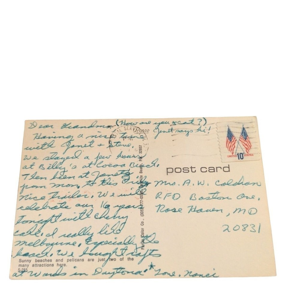 Postcard Hello From Melbourne Beach Florida Pelicans Sunny Beach Chrome Posted