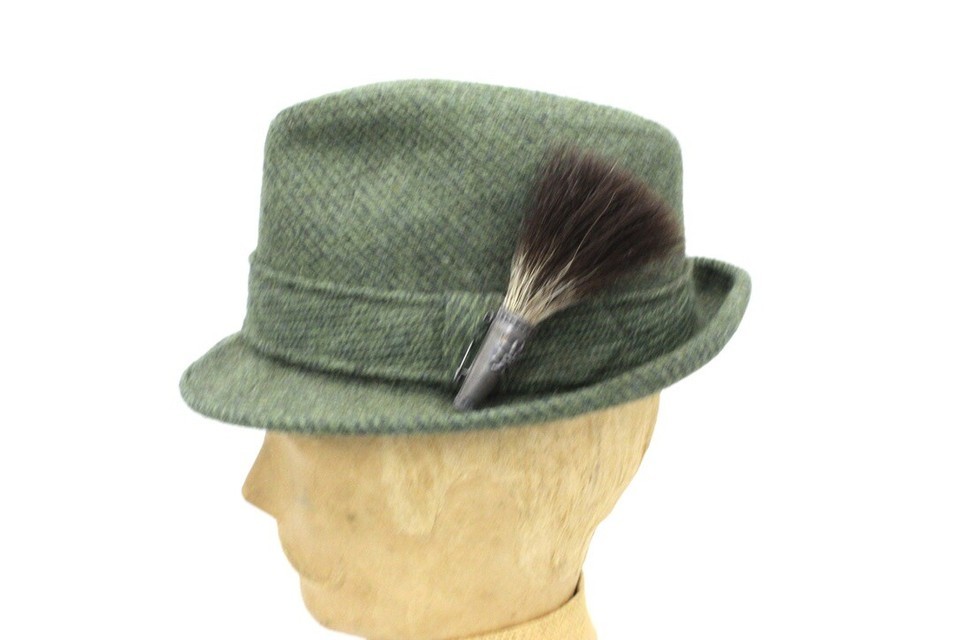 Mens Vtg Hat 6 7/8 S Champ Fedora Green Tweed /German Boar Bristle Hat Ornament