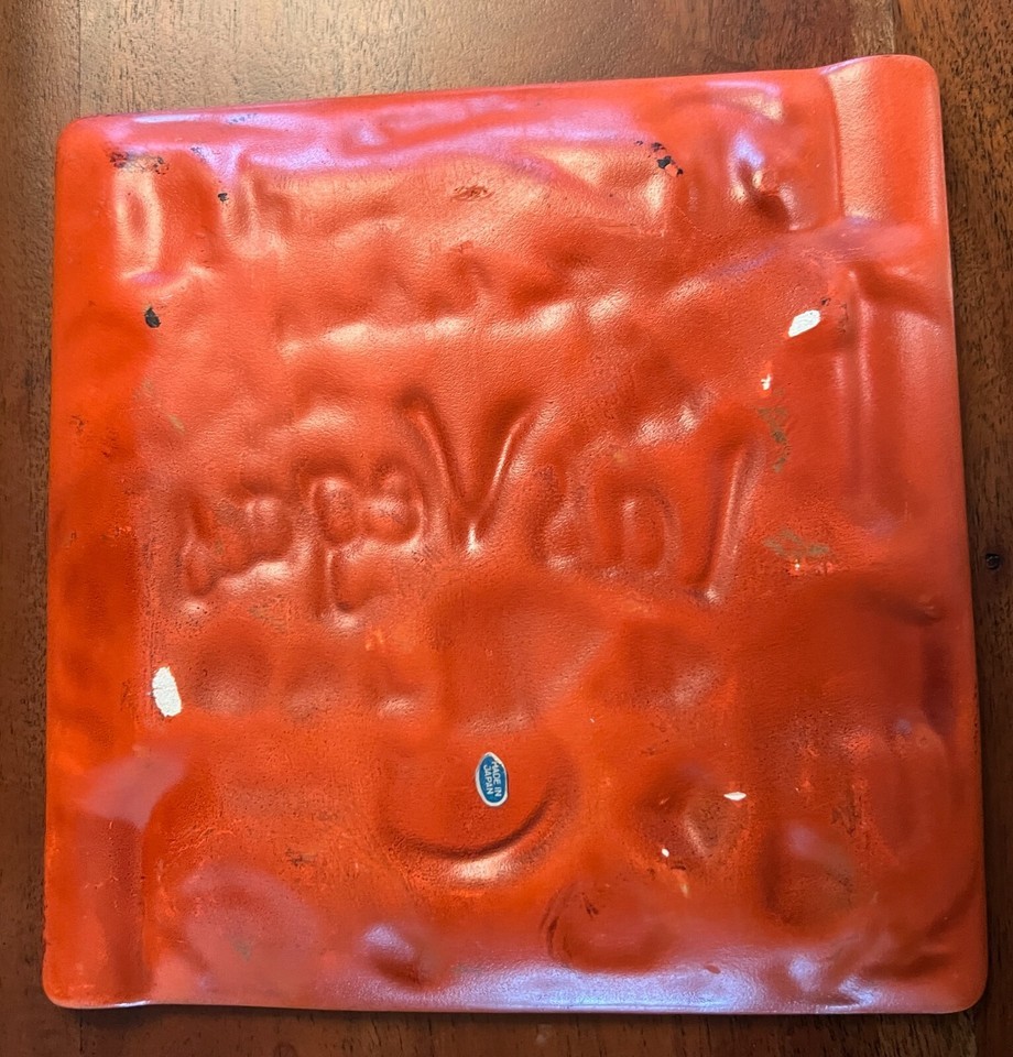 Vintage Ashtray 1950s Las Vegas Hotels Orange Gold Nevada Casinos RARE Japan- it seems unused as the sticker is still on the back and the top is really unused. The back has a couple of chips on the bottom but the top and edges are perfect! Great piece for your Elvis Man Cave or Lounge Lizard Bar. 7.5" square. It has a matte finish.LOVE RETRO!