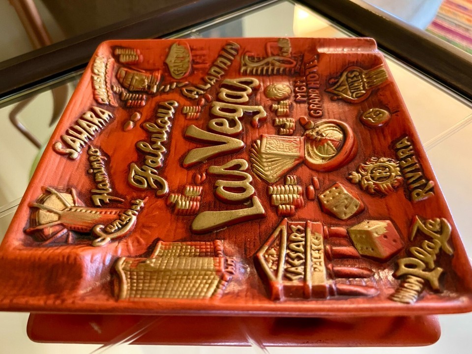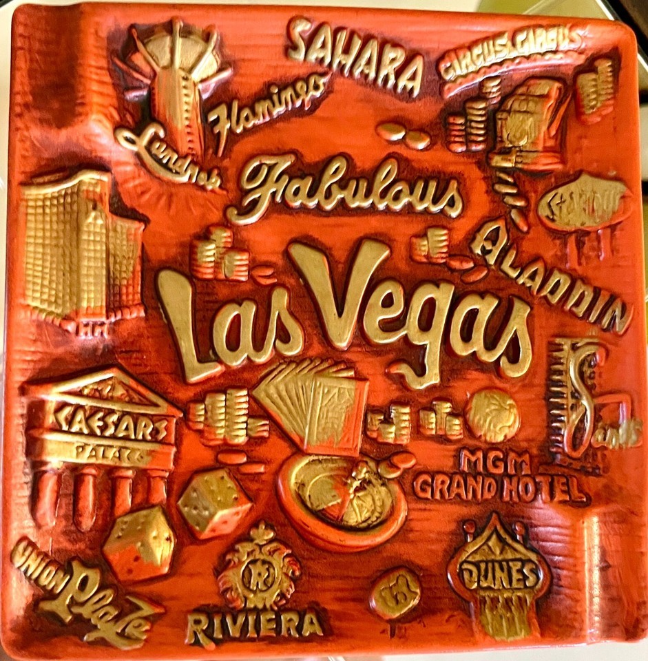 Vintage Ashtray 1950s Las Vegas Hotels Orange Gold Nevada Casinos RARE Japan
