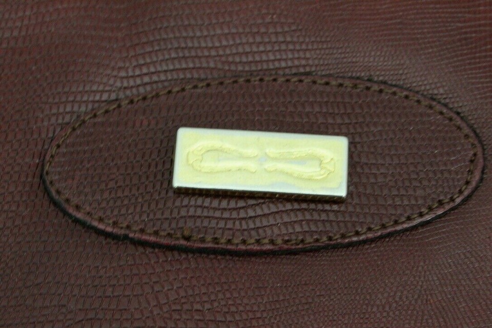 Vtg 70s Etienne Aigner Classic Burgundy Reptile Leather Handbag LARGE Clutch Zip
