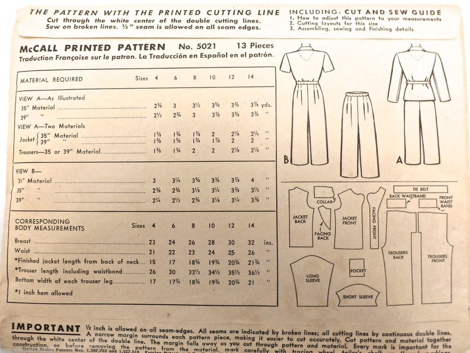 Vintage 1940s Sewing Pattern McCall's #335 and similar items