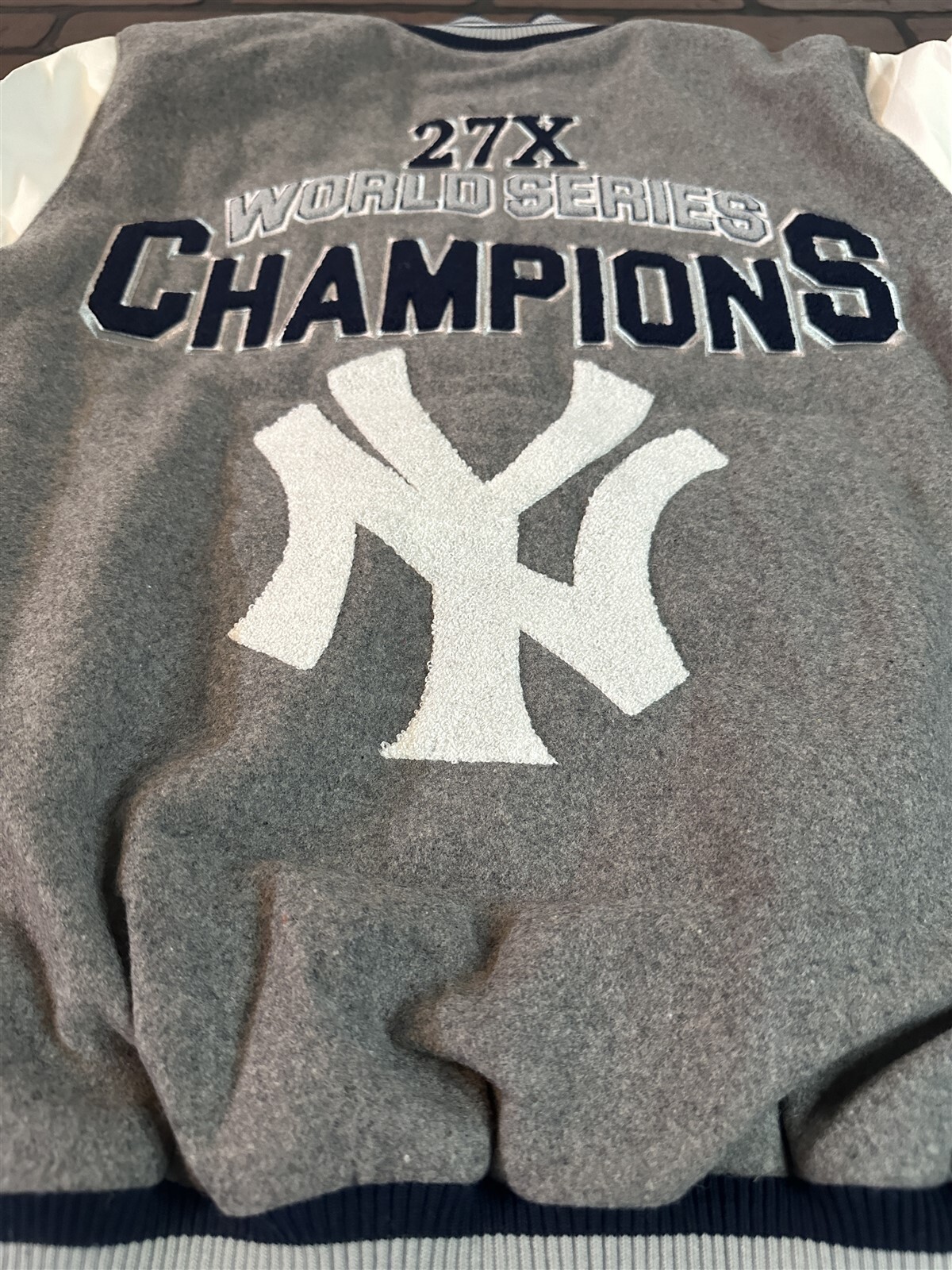 New York Yankees G-III 27X World Serie Varsity Giacca ~ Similpelle Maniche