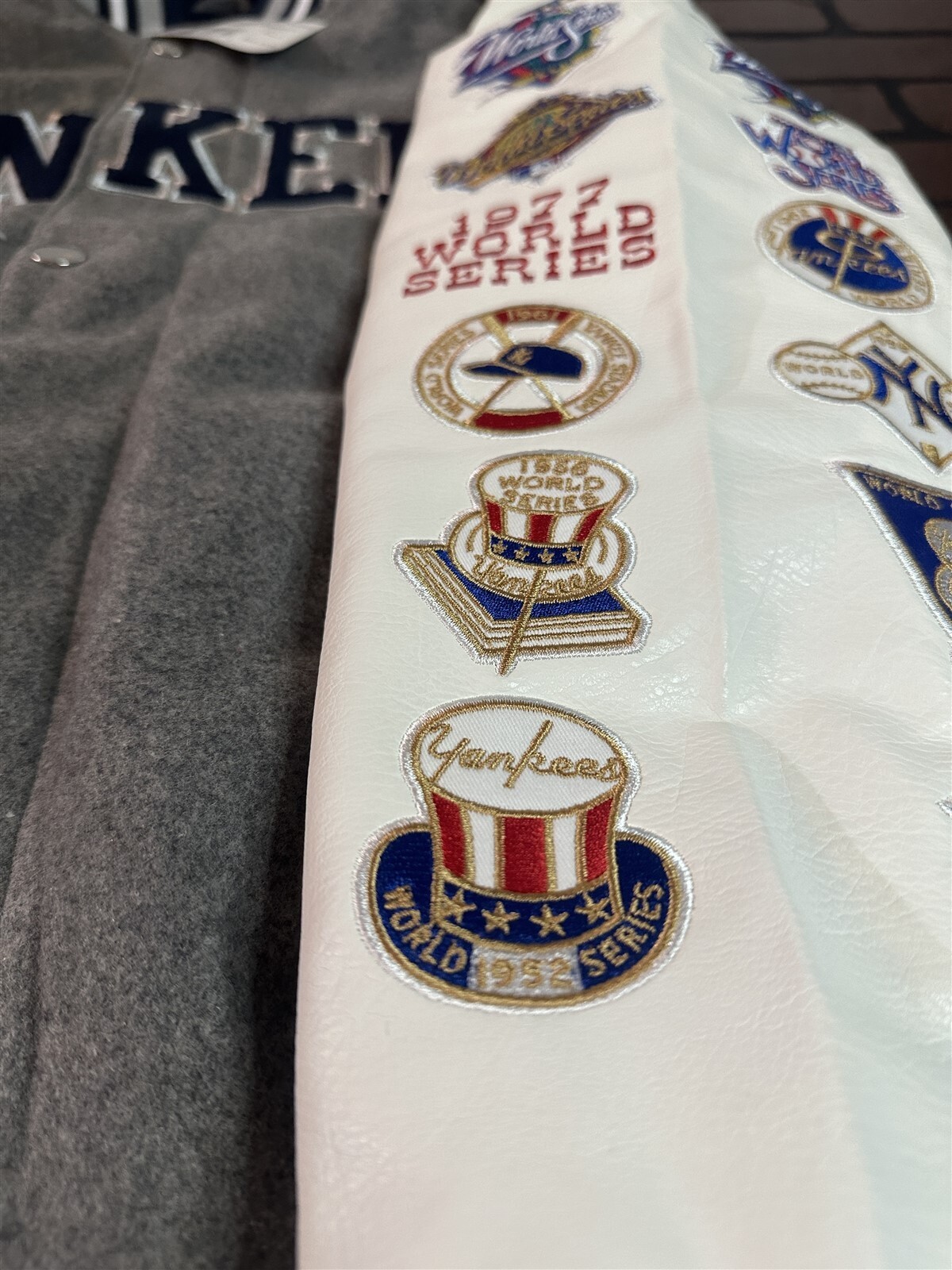 New York Yankees G-III 27x World Series Varrsity Jacket ~ manicotto in pelle finta ~