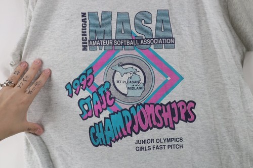 Vtg 90s Womens L 1995 State Champs MASA Michigan Amateur Softball T-Shirt USA