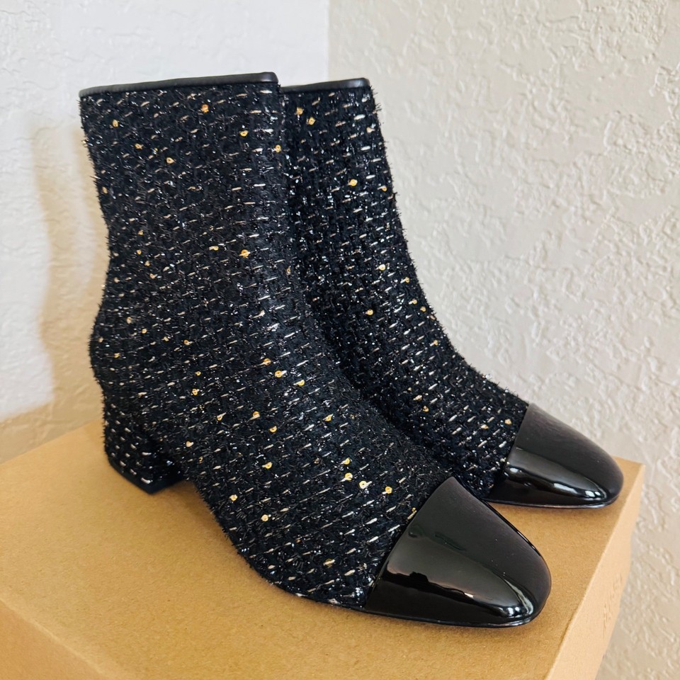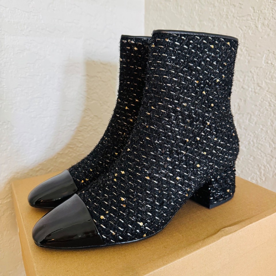 Steve Madden Eiffel Bootie, Tweed Black Sparkle, Low Block Heel, Size 8.5, NWT