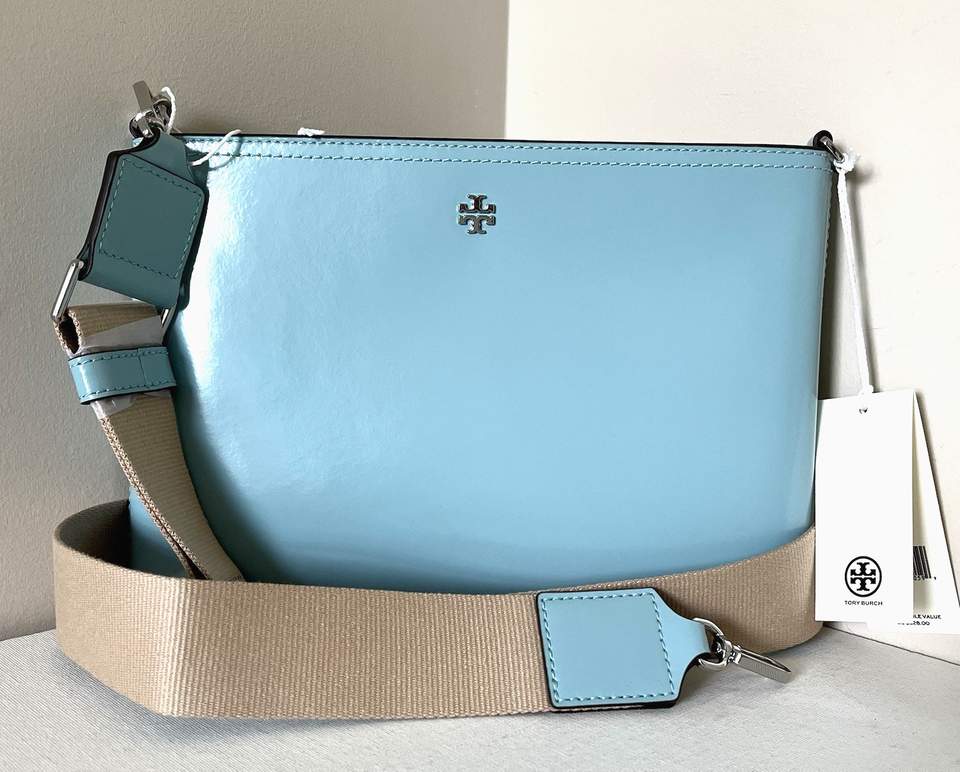 New Tory Burch Blake Patent Swingpack Crossbody Leather Angel Blue